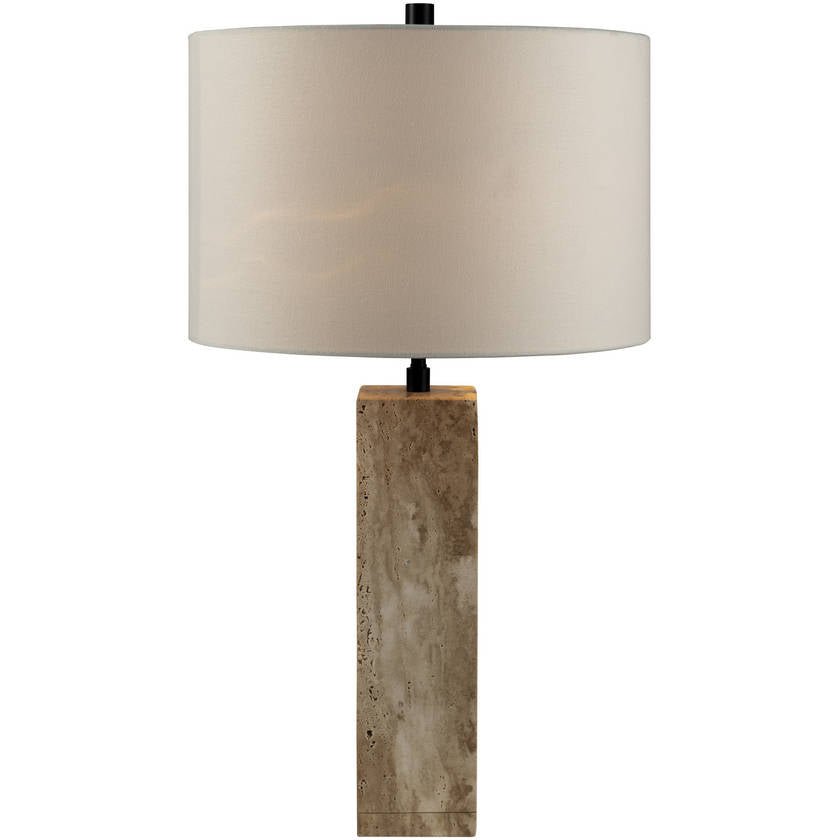 Illuminate your space with a touch of Industrial Rustic charm by adding the Goderich Accent Table Lamp to your home decor. Constructed with a stunning Travertine body and a durable Metal finial, this lamp exudes a robust and earthy appeal that can enhance any room’s aesthetic. The lamp is complemented by an exterior Linen shade and an interior Polyester shade, which work together to diffuse warm, inviting light throughout your space. Standing at 28 inches tall, this accent table lamp makes an impressive statement on its own while seamlessly blending into your existing decor. With its unique combination of materials and textures, the Goderich Accent Table Lamp is more than just lighting – it’s a piece of art that illuminates.