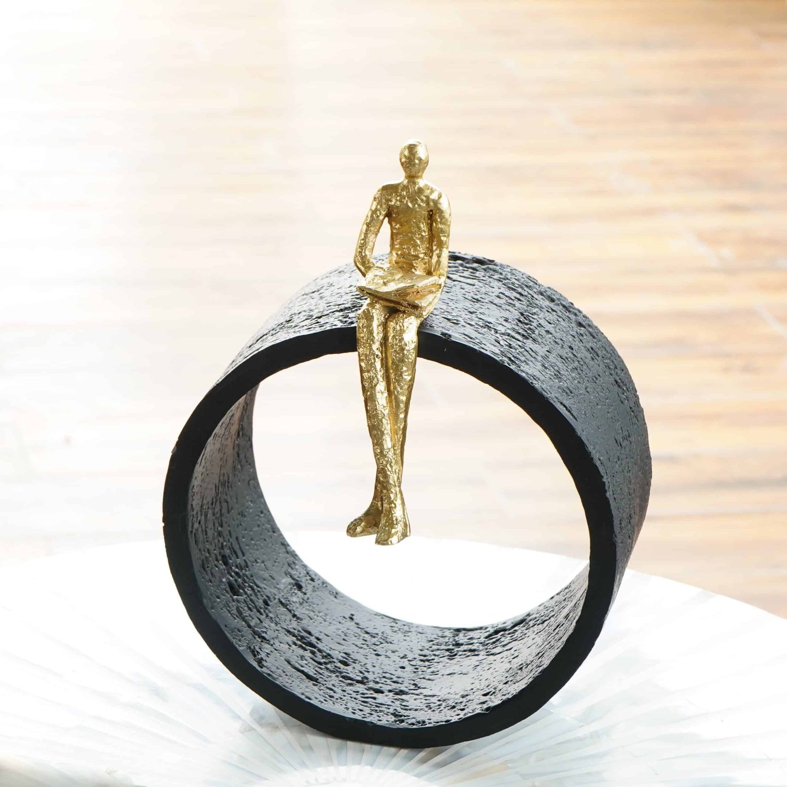 Black & Gold Circular Focused Sitting Figure Sculpture