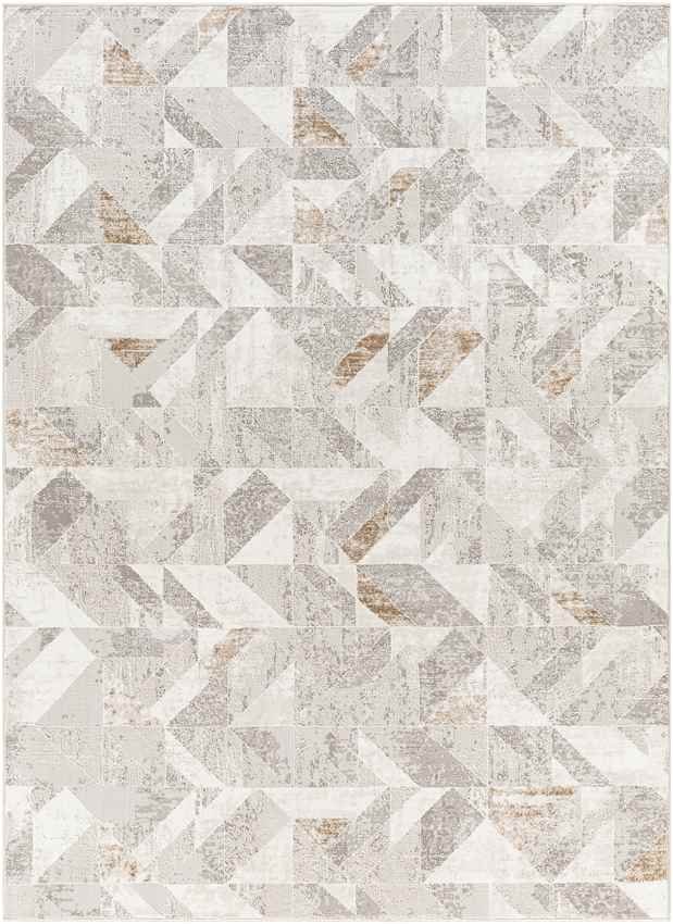 Transform your living space with the Gowrie Modern Beige Area Rug, a striking blend of modern design and functional durability. Featuring a dynamic geometric pattern in shades of ivory, medium gray, charcoal, tan, and light gray, this rug brings elegance and visual interest to any room. Its medium pile height adds a layer of comfort, while its durable construction makes it perfect for high-traffic areas.