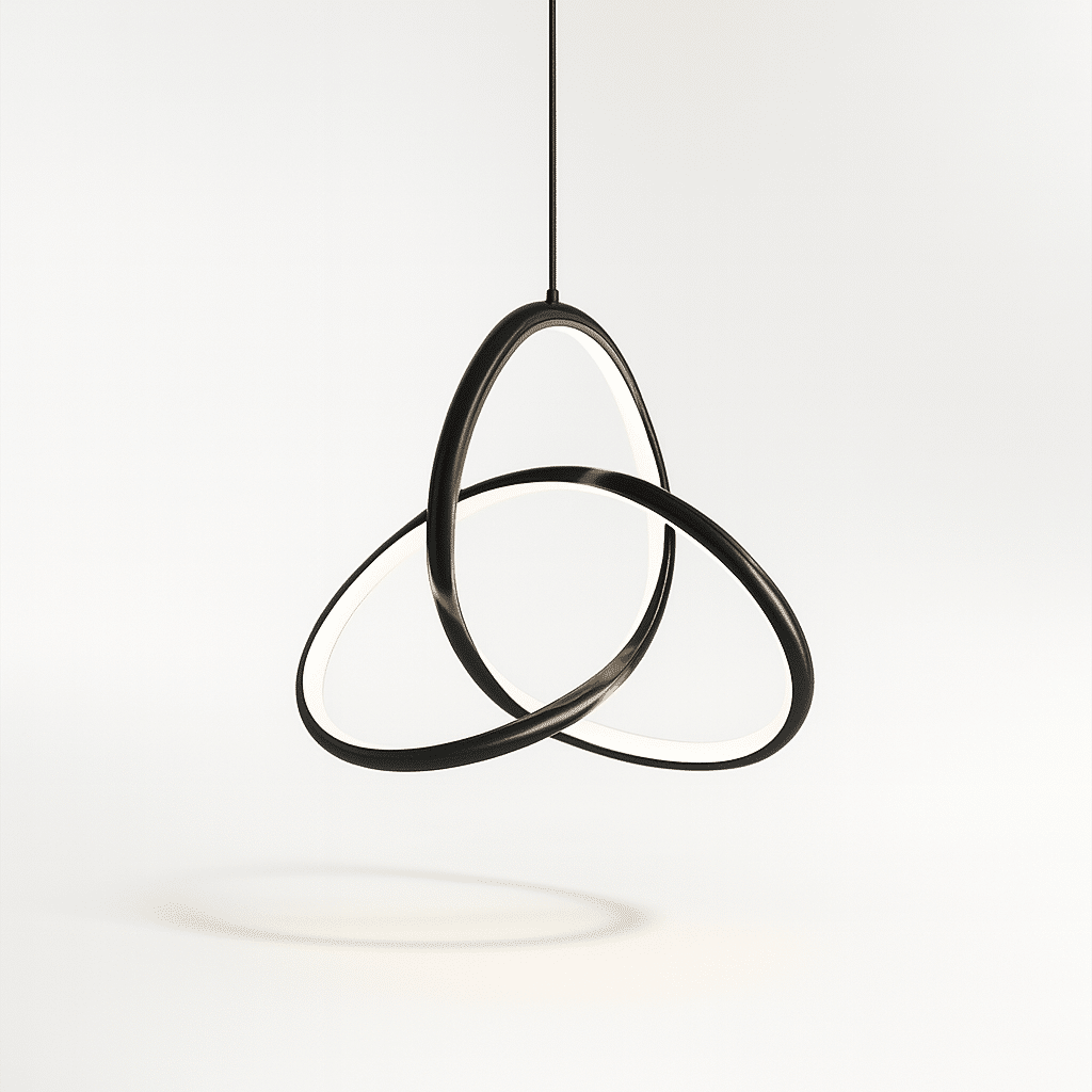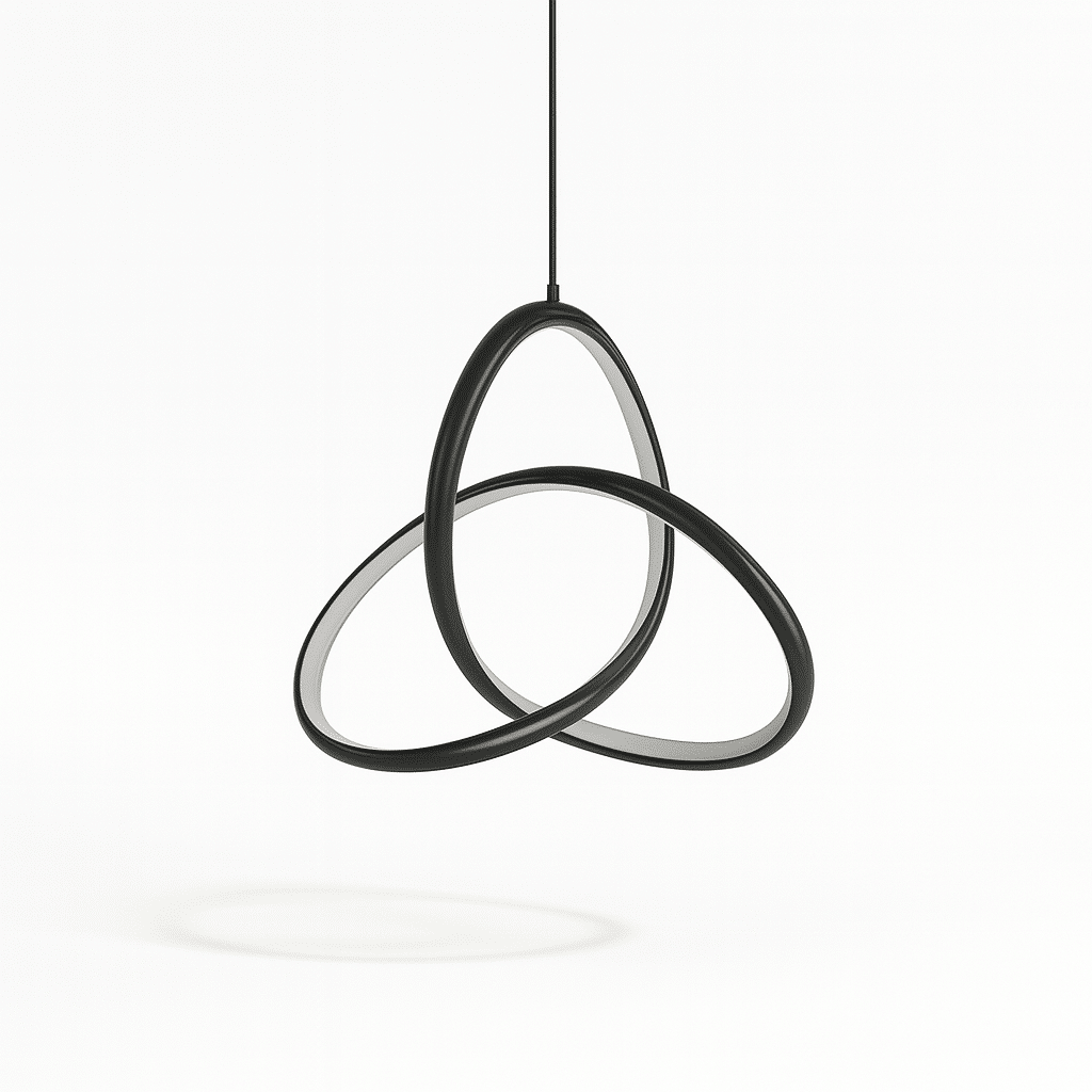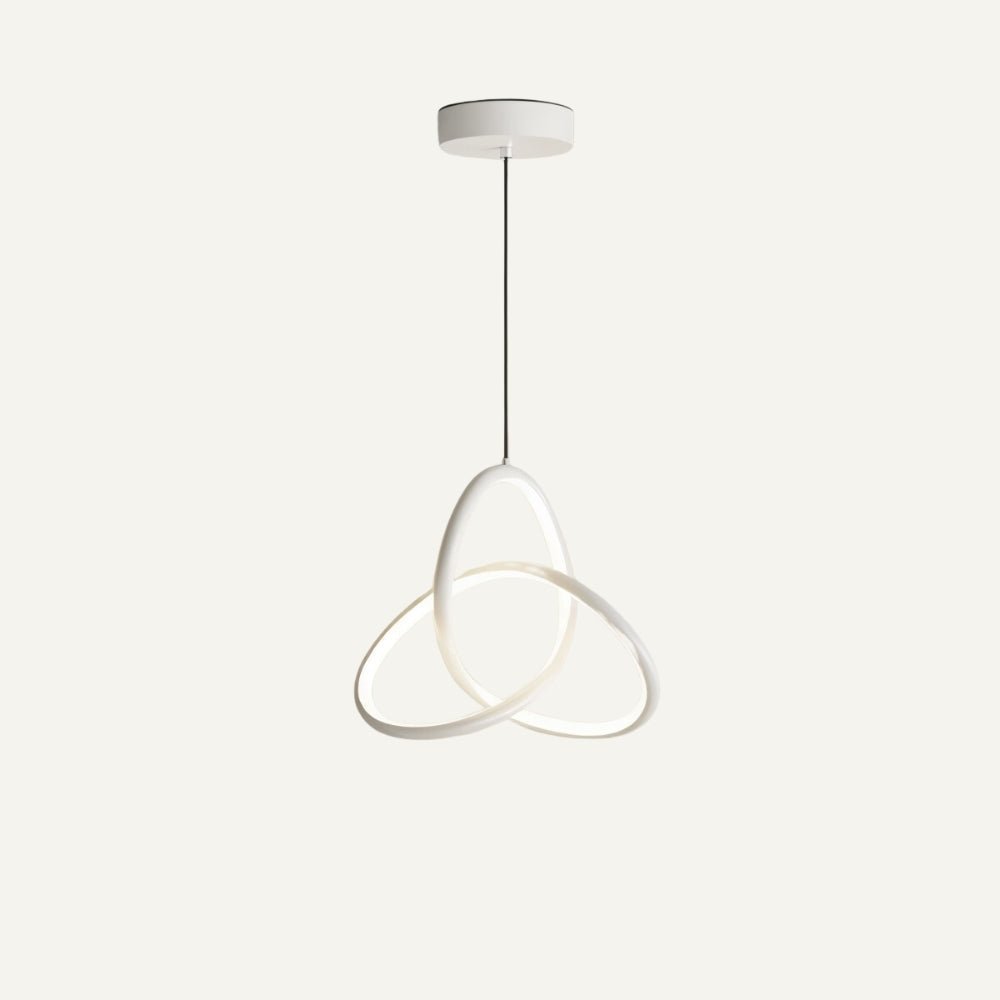 Hajan Pendant Light features a sleek aluminum body and a clear acrylic shade. Available in white, black, or gold, it matches various decor styles. The unique intertwined design adds a contemporary touch, while the durable materials ensure long-lasting use. This light provides warm, diffused illumination, perfect for creating an inviting atmosphere in any room. Enhance your space with this stylish and functional lighting solution.