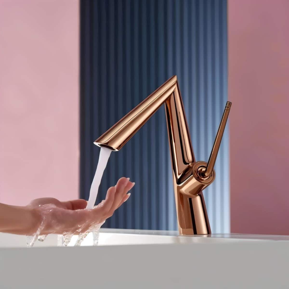 Hasmn bathroom faucet features a sleek, modern design with angular and a minimalist aesthetic. Its high-arc spout is crafted with clean edges, creating a visually appealing and contemporary silhouette. The faucet’s single-lever handle provides seamless control, complementing the overall streamlined look.