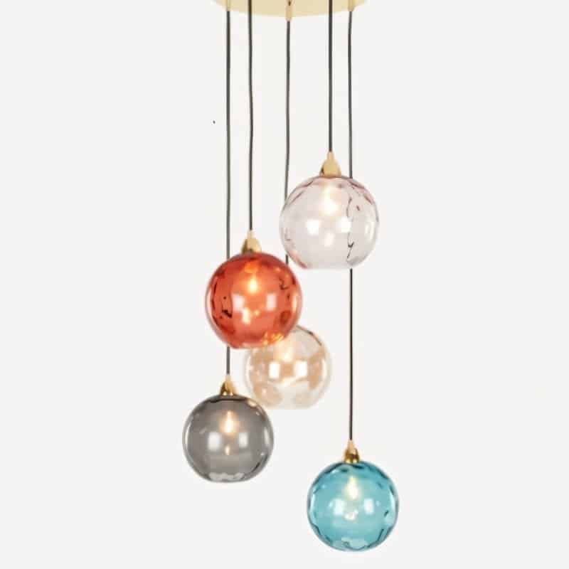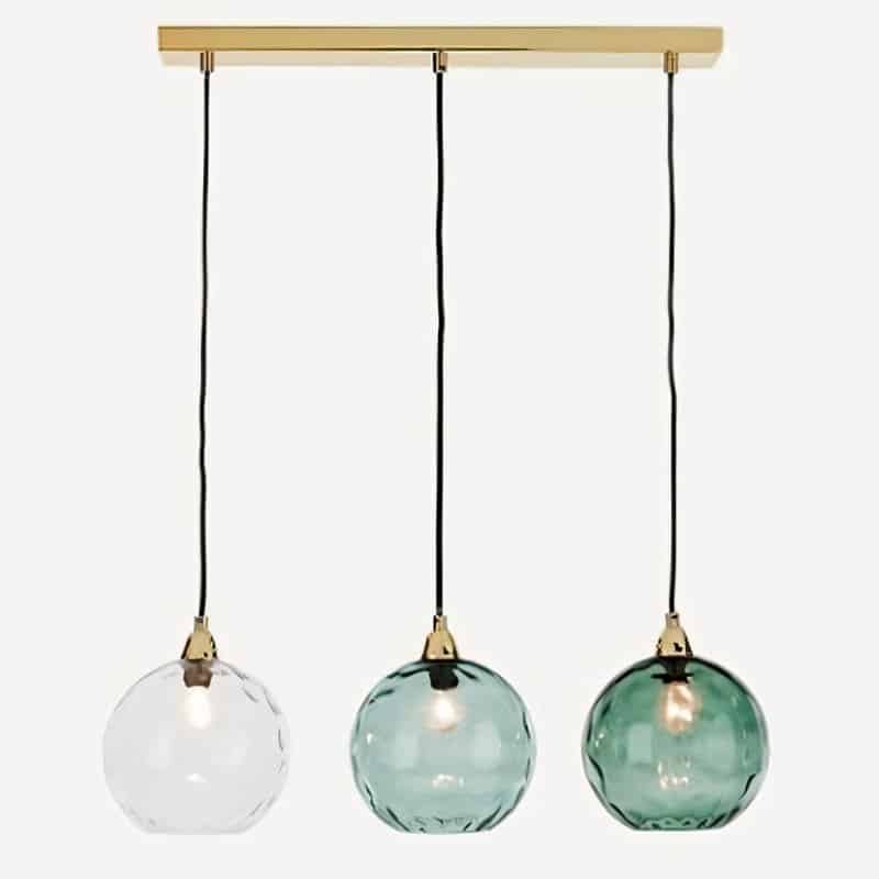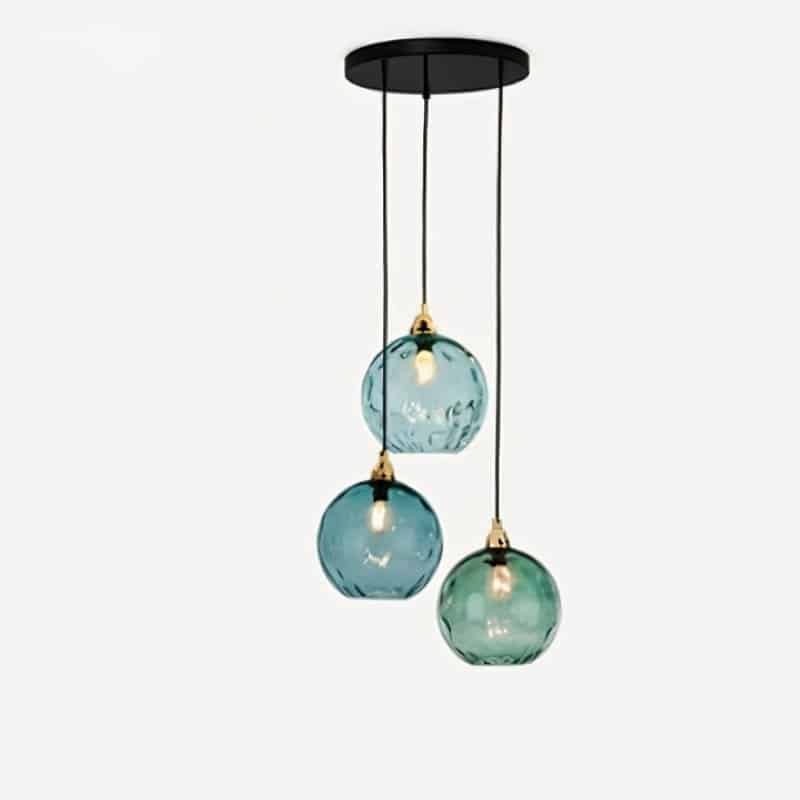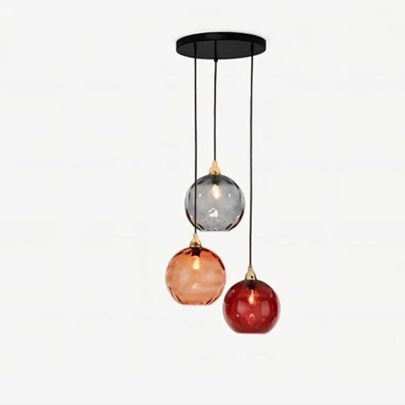 Elevating the ambiance of any home it adorns, the Hea Pendant Light showcases exquisite blown glass lampshades with stunning gold accents that enhance its aesthetic appeal. Available as single units or in captivating combinations of vibrant lampshades, the Hea is an ideal choice for hanging above a dining table or gracing a lounge, infusing any room with a vibrant burst of life and color.
