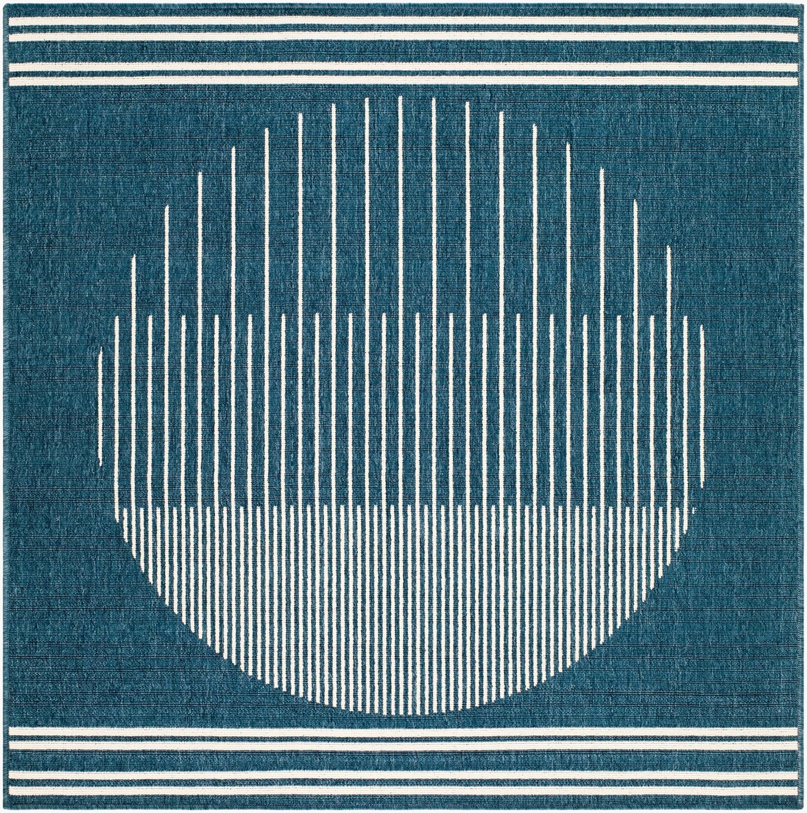 The Heathr Modern Marine Blue Area Rug is expertly machine-woven in Egypt using 100% polypropylene, a material known for its resilience and weather-resistant properties. Its robust construction is ideal for high-traffic areas like patios, porches, and living rooms. Designed for long-lasting performance, this rug offers an unbeatable combination of style and functionality.