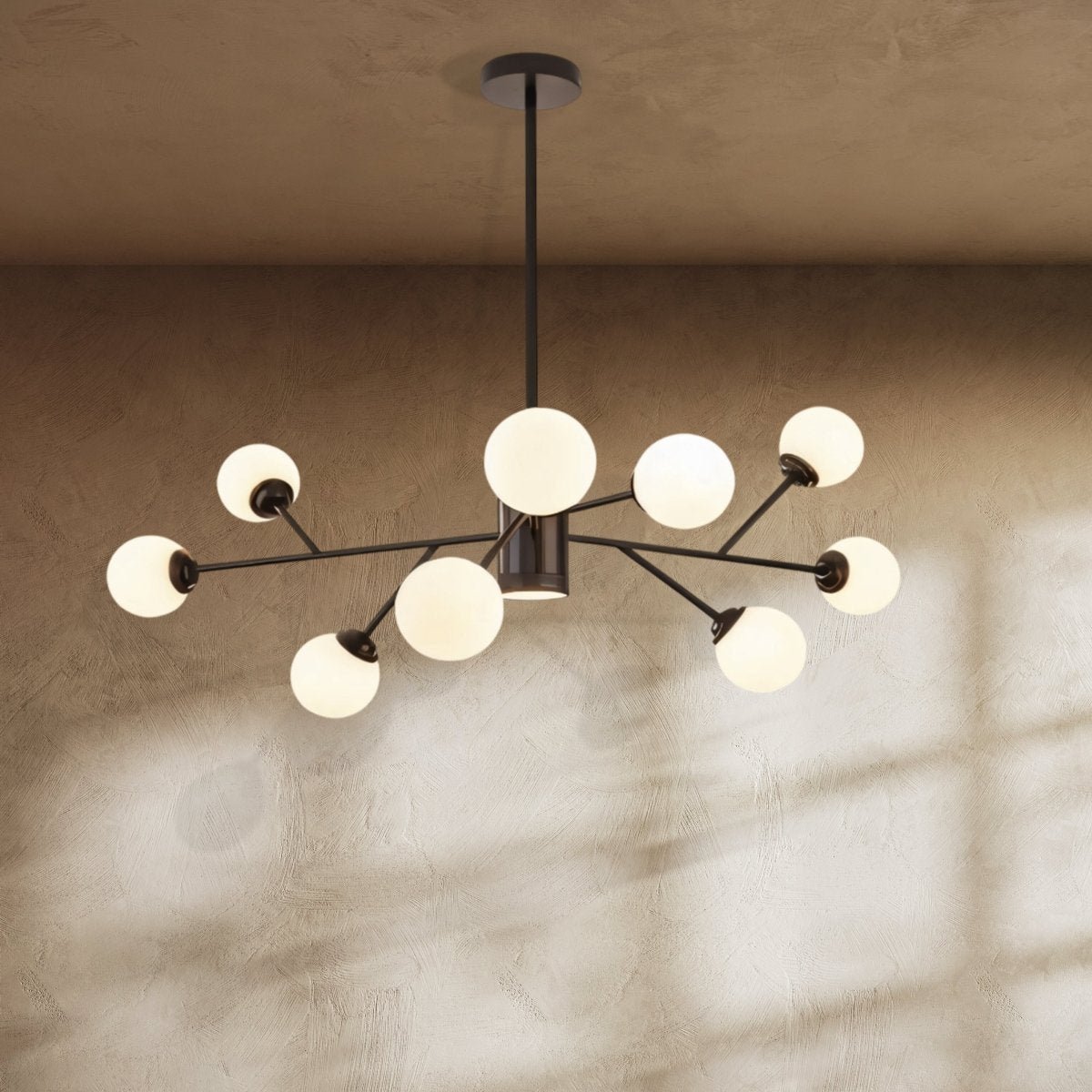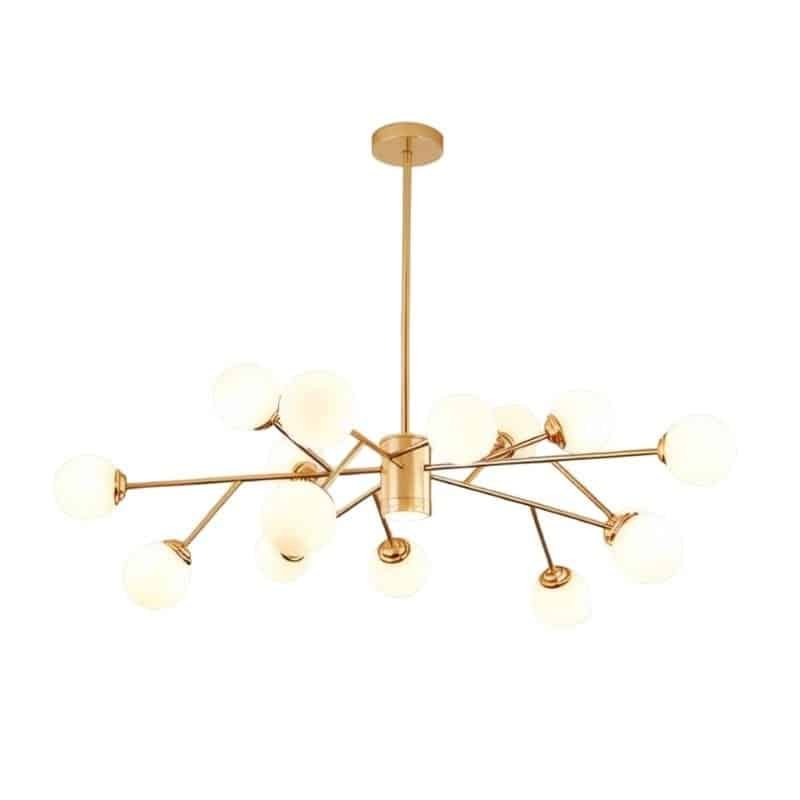 The Helena Chandelier is a versatile piece that exudes elegance and class. It is crafted from high-quality aluminum and available in beautiful hues of gold and black. Its sleek design provides ample lighting and creates a cozy ambiance, elevating the overall aesthetic of your space. This striking chandelier is perfect for illuminating dining rooms, living rooms, bedrooms, and entryways, adding a touch of drama and elegance to any space.