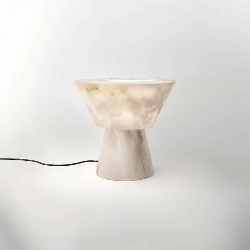 Magnifies the essential beauty of alabaster with an illuminated upper body.