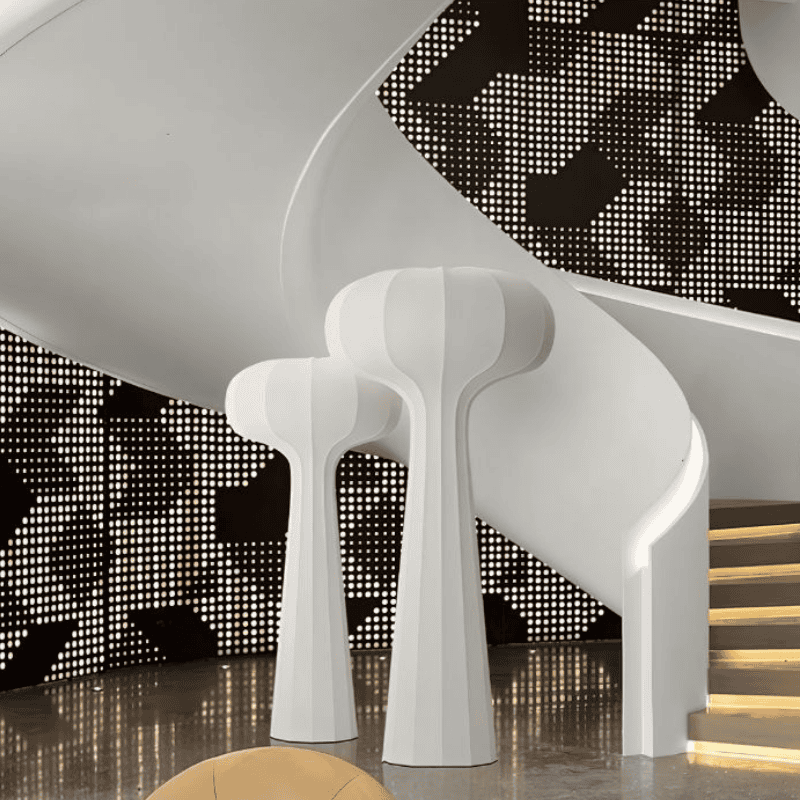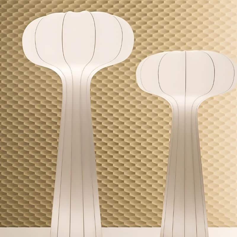 The Himins Floor Lamp is a striking light fixture with a sculptural design and streamlined silhouette. Crafted with silk, its elongated body features a flared top with subtle ridges, adding a modern and sophisticated touch. This versatile lamp seamlessly complements contemporary and minimalist interiors, making it ideal for living rooms, bedrooms, or study areas.