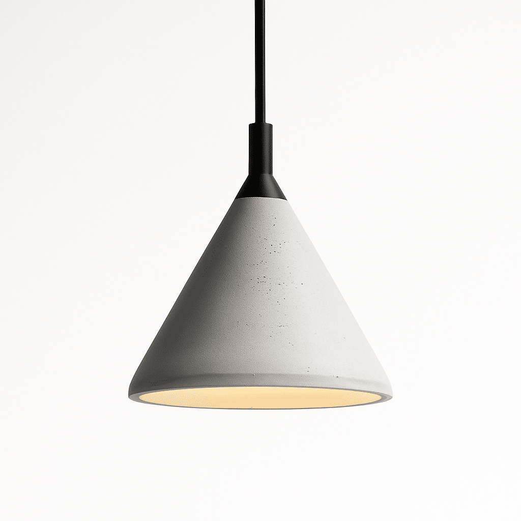 The Hlyna Pendant Light features a conical concrete design with a minimalist black cord, blending modern and industrial aesthetics. This light fixture provides focused downward illumination, which is ideal for dining areas, kitchen islands, cafes, and restaurants. Its raw concrete finish complements contemporary, industrial, and Scandinavian interiors. Designed for both residential and commercial spaces, it offers a balance of style, function, and durability.