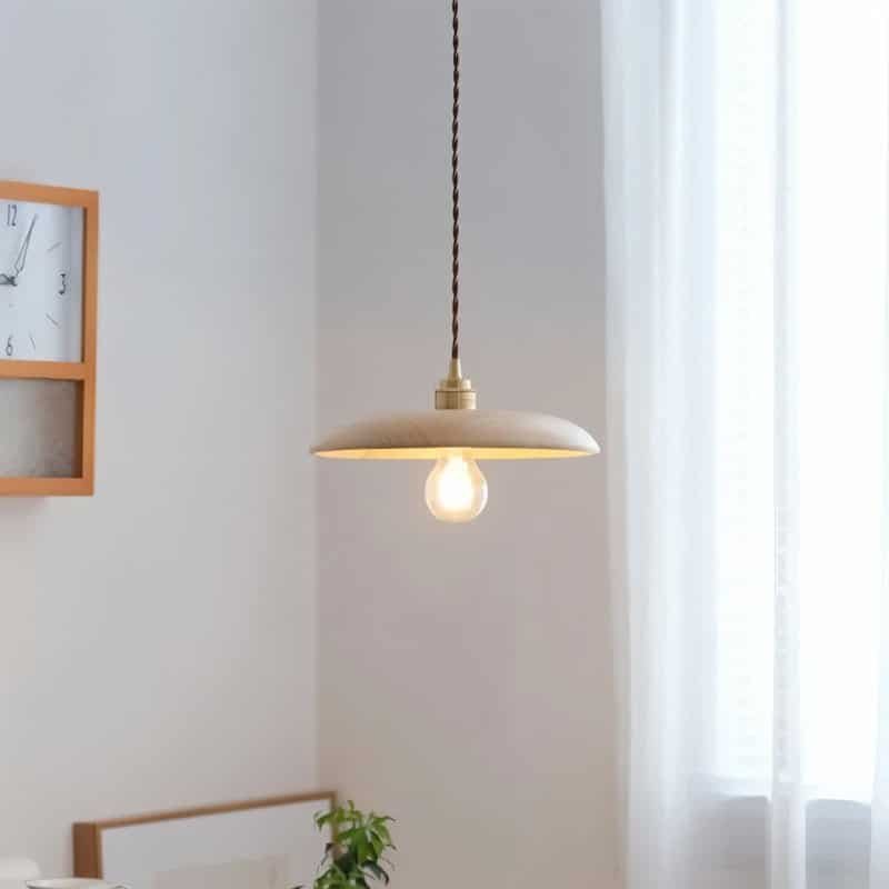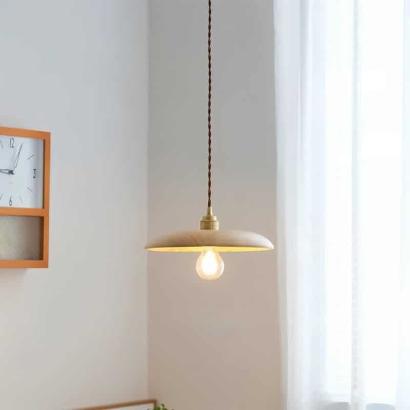The Hreta Pendant Light is a minimalist wood light fixture with a sleek, dome-shaped wooden shade and brass accents, perfect for modern and rustic interiors. Its exposed filament bulb enhances the vintage appeal, while the twisted fabric cord adds a timeless touch. Ideal for dining areas, kitchen islands, and reading nooks, it blends seamlessly into Scandinavian, industrial, or farmhouse-style spaces. This pendant light fixture provides warm ambient lighting, making it a versatile choice for residential and commercial settings.
