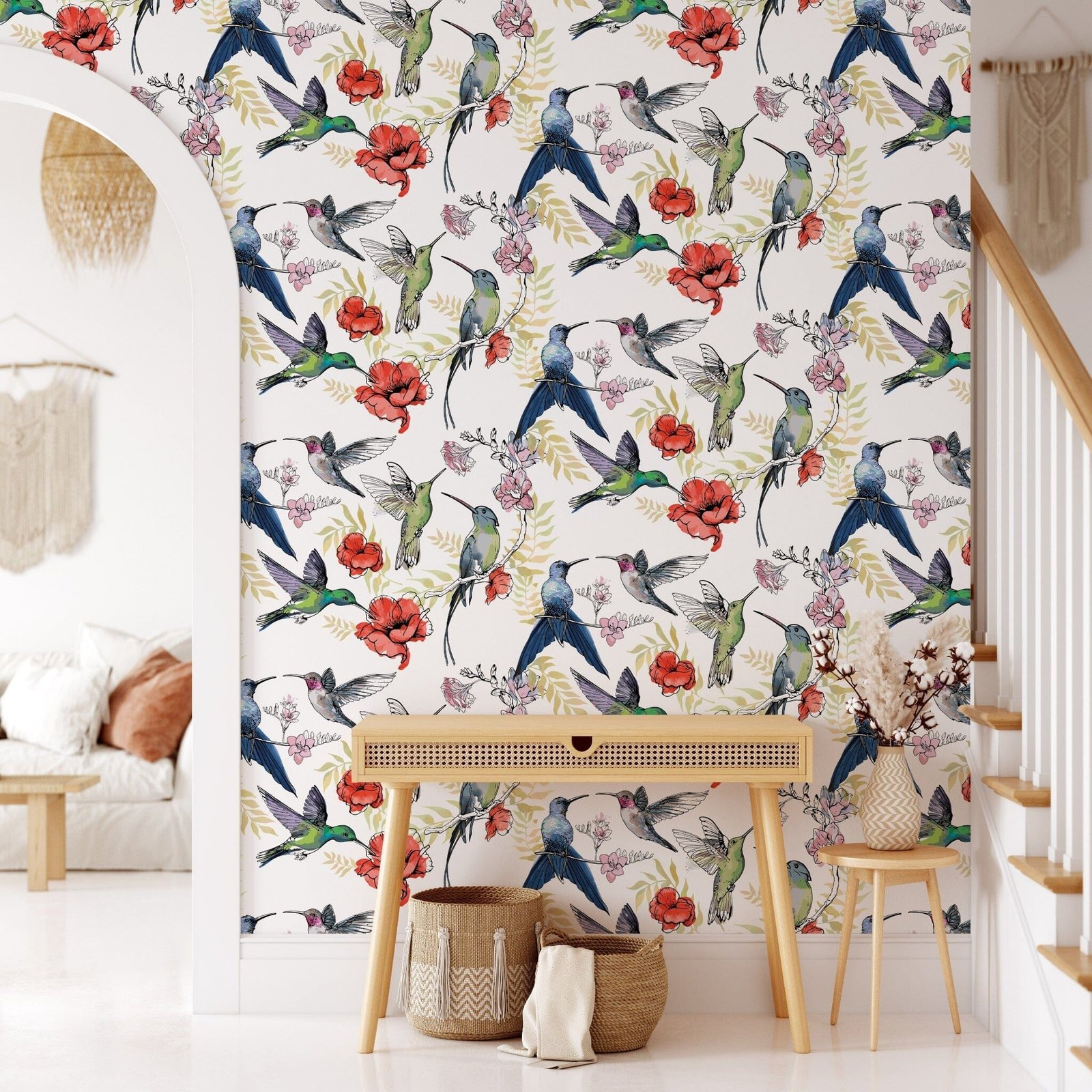 Instantly transform any room into a charming oasis with our Hummingbird Wallpaper Peel and Stick. Featuring delicate hummingbirds and vibrant flowers, our easy to install wallpaper mural adds a touch of nature to your space without a hassle. Upgrade your home decor now!