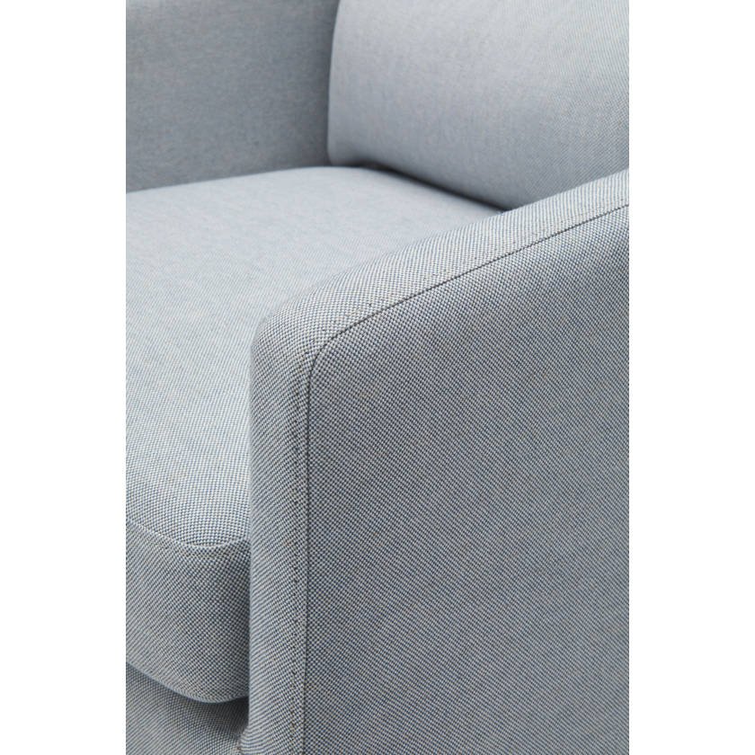 - Material: Upholstery: Polyester, Linen; Base: Rubber Wood; Fill: 75% Polyester Wrapped Foam, 25% Polyester/Polyfill