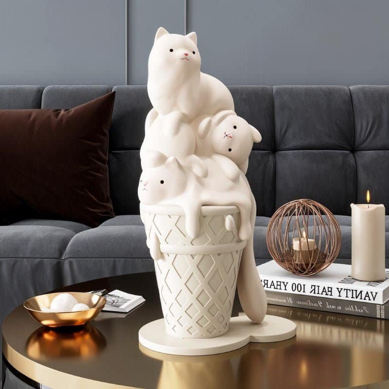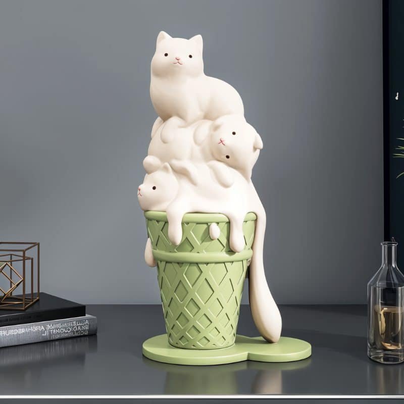 Icee is an adorable cat ice cream sculpture that highlights a charming aura and generates a pleasant ambiance.