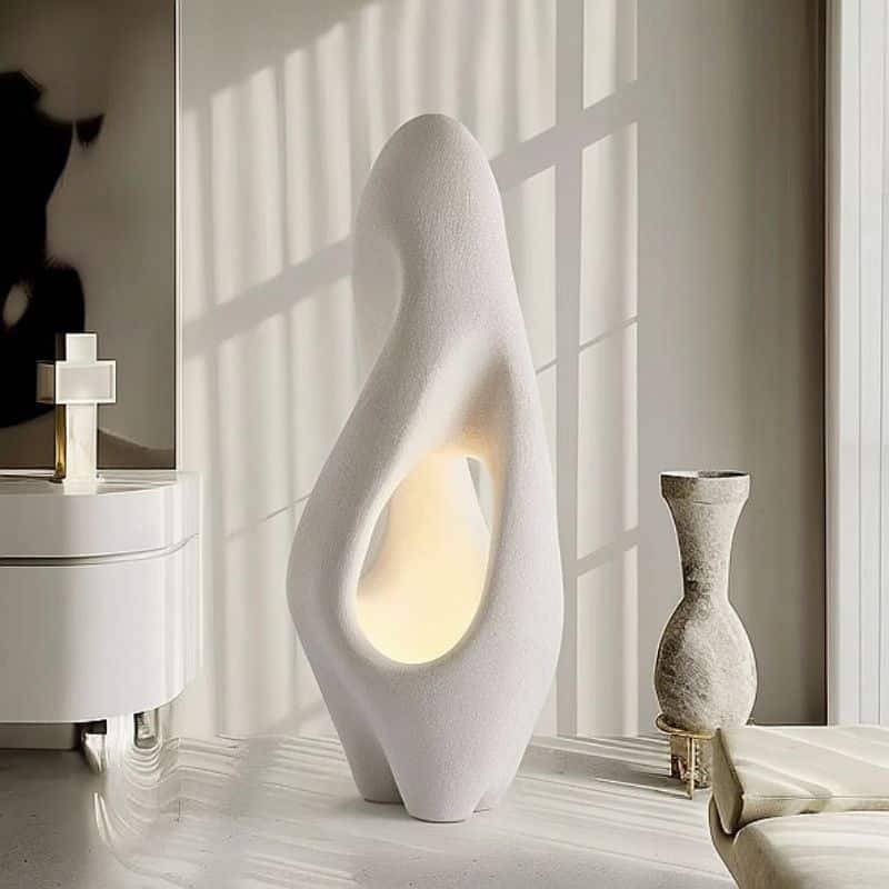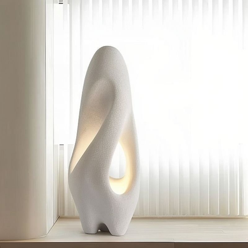 The Izbu Floor Lamp is a striking light fixture crafted from polystyrene, featuring a sculptural with smooth curves and hollowed details. Its artistic shape diffuses soft, ambient light, making it a centerpiece for modern living rooms, lounges, or entryways. This floor lamp combines functionality with an artistic aesthetic, elevating contemporary interiors while providing warm, inviting illumination.