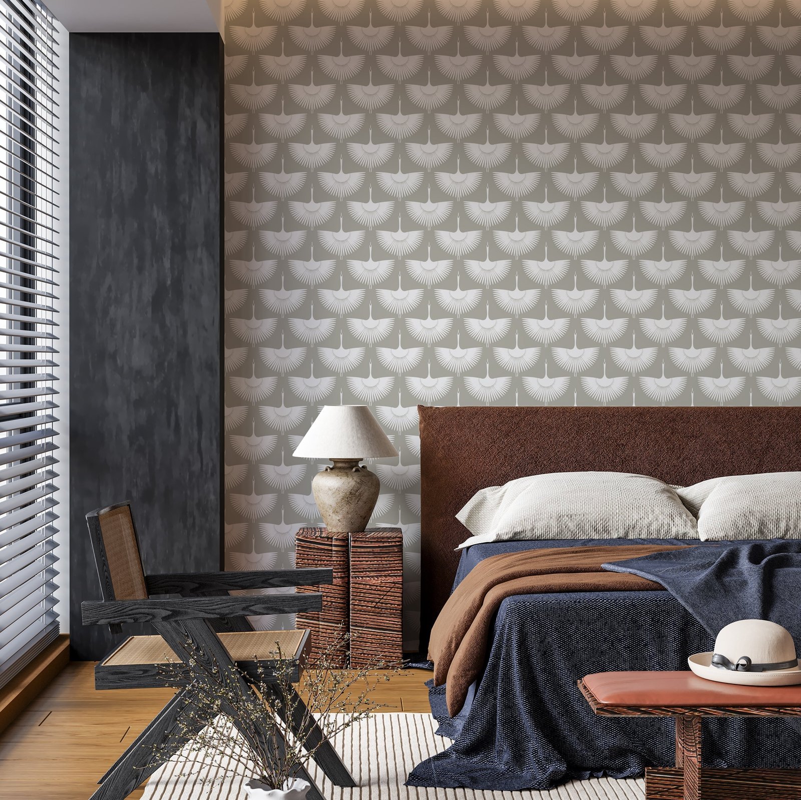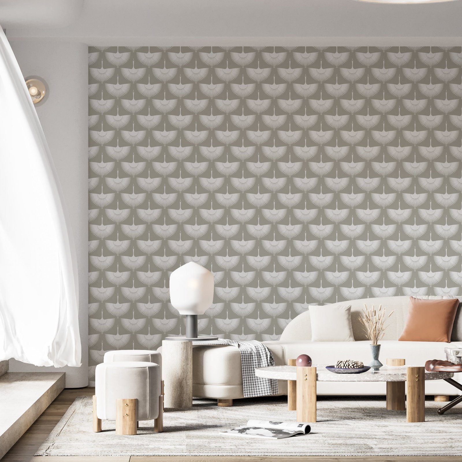 Add timeless elegance to your space with Japanese Swan Wallpaper. Featuring graceful birds in flight against a calming beige background, this peel and stick wallpaper blends nature-inspired beauty with effortless installation.