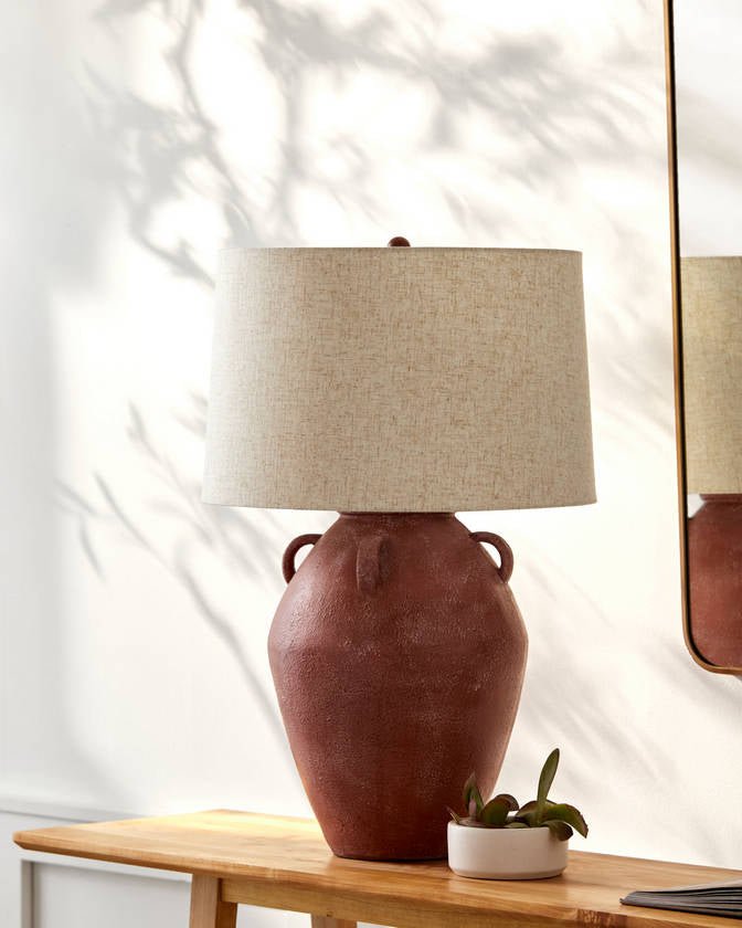 - Colors: Body: Red; Shade (Outside): Wheat; Shade (Inside): White; Finial: Red; Harp: Metallic – Nickel; Cord: Translucent