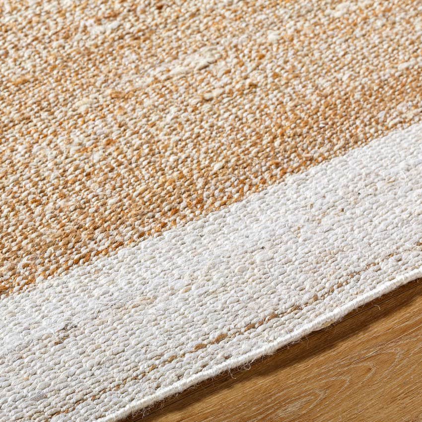 Introduce a touch of rustic charm to your space with our Kamey handmade rug, designed in an exclusive collaboration between Becki Owens and Livabliss. Perfect for that Farmhouse Cottage style you love, this stunning piece features neutral tones of sandy brown bordered by off-white bars at the top and bottom. Created using traditional hand-woven techniques in India, the rug is made from natural Jute fibers which adds to its organic appeal. This no-pile rug is easy to maintain with spot cleaning using water only and we recommend using it with a rug pad for additional comfort and longevity. Step into serenity every day with our delightful Kamey rug!