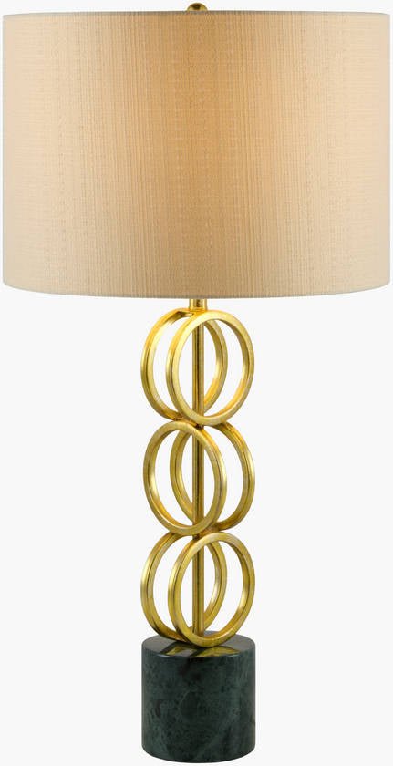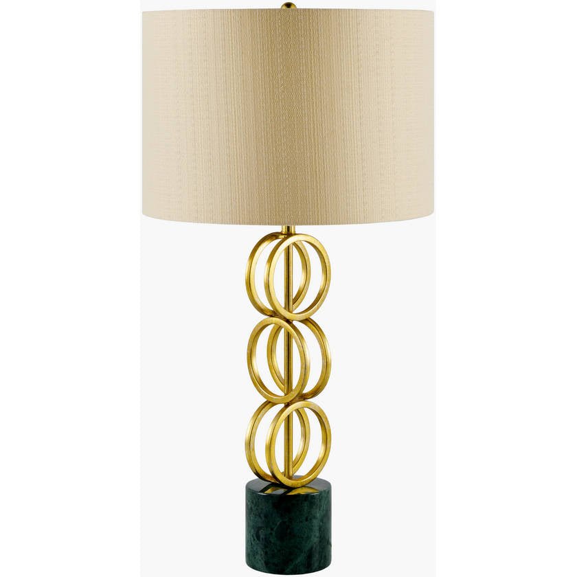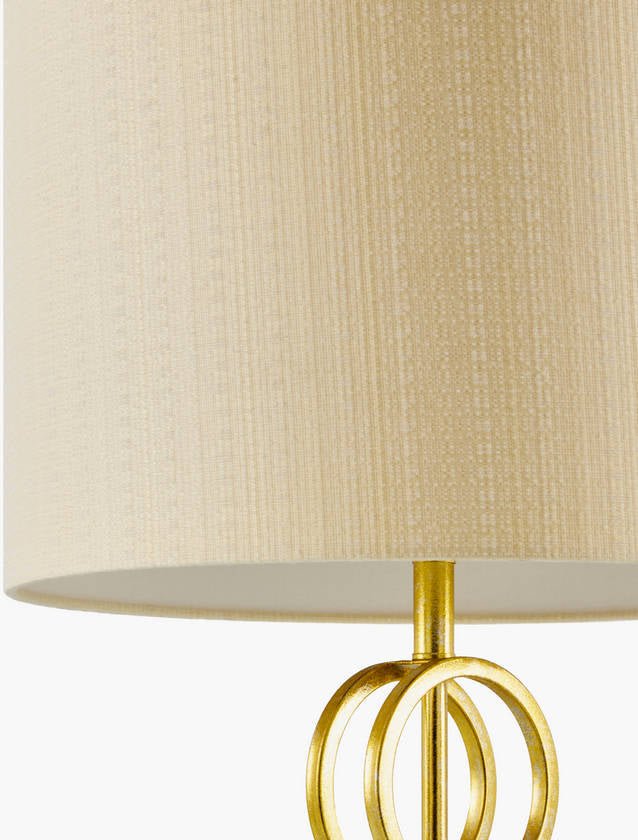 - Colors: Body: Gold; Base: Green; Shade (Outside): Beige; Shade (Inside): White; Finial: Gold; Harp: Metallic – Nickel; Cord: Translucent
