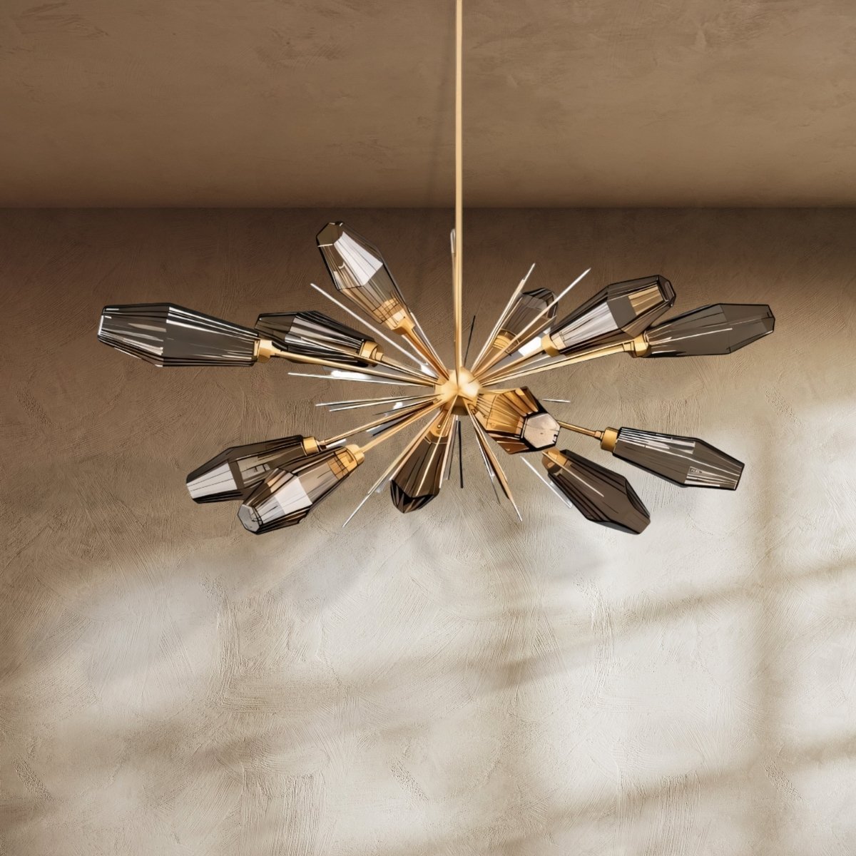 The Kristal Chandelier adds a touch of elegant glamor to your interior space with its Rock Crystal light fixtures made of artisan-blown glass. Kristal’s hexagonal prism-shaped glass fixtures capture the magnificent charm of natural quartz. It makes an enchanting replacement for conventional lanterns and offers a stylish approach to brightening up an entire room. This stunning modern chandelier would be a striking centerpiece above a dining table or in a spacious living room and bedroom.