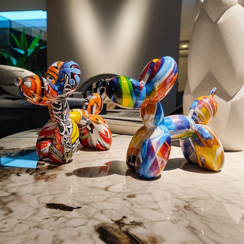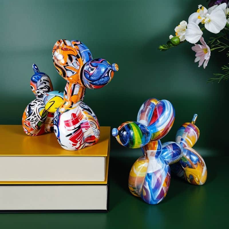 The Kyon Home Decor is aesthetically pleasing and artistically charming. It is artisan-made and expertly crafted from durable, high-quality resin featuring a figurine of a balloon dog with colorful graffiti or patterns on it. Kyon brings all the joy, flair, and uniqueness that any modern setting deserves and comes in a range of vibrant, eye-catching patterns making it the perfect addition to your existing decor or as a gift for a birthday, Christmas, or any other occasion.