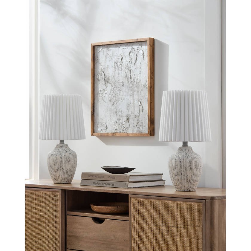 Illuminate your space with our Ladreka Collection accent table lampssold as a pair. These charming pieces are crafted with ceramic bodies, ensuring an attractive and sturdy presence in your room. The linen exterior of the shades provides a soft diffusion of light, while the polyester interior adds durability. Standing at a total height of 19 inches, they are perfectly proportioned to become statement pieces on any table or desk. These accent lamps not only deliver illuminating light but also bring aesthetic appeal to complement any decor style. Plus, caring for them is simplejust wipe clean with a dry cloth and avoid harsh cleaners to preserve their beautiful finish. Let these lamps brighten your home and add a stylish flair!