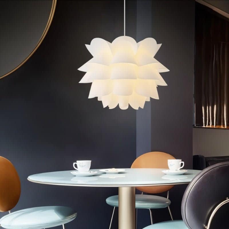 The Lauren Pendant Light imparts an air of sophistication to your space with its exquisite lotus design, in a striking white hue that commands attention wherever it is installed. When illuminated, it exudes an ethereal radiance, making it a captivating addition above your dining table, whether installed individually or in pairs, to elevate the overall aesthetic of your room.