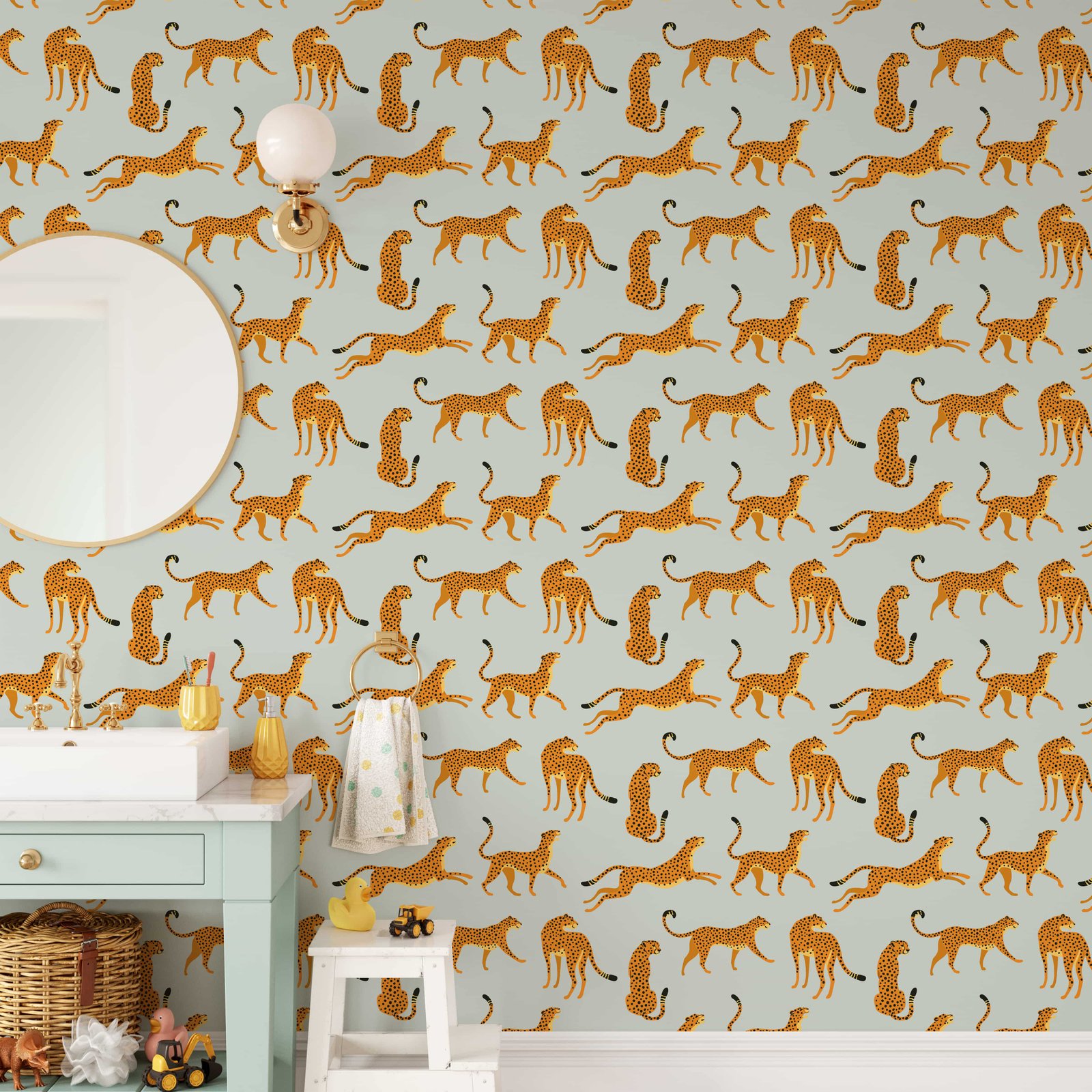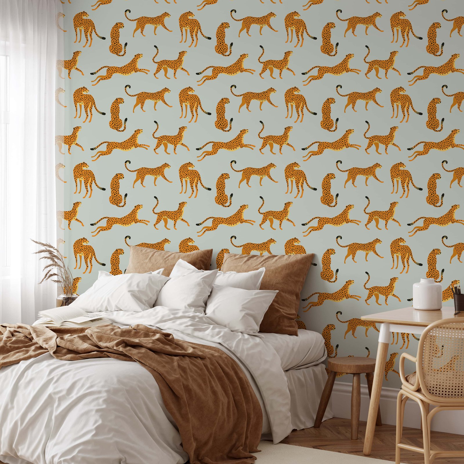 Elevate your home decor with our Light Gray Cheetah Animal Print Wallpaper.