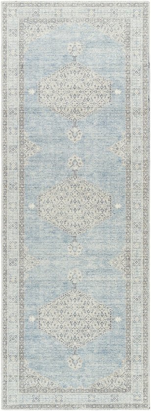Lila Traditional Denim/Ivory Area Rug is a 100% polyester and stain resistant item that can be matched with wood furnishing or brown tone accent accessories. Create your dream home with a stunning rug in the center.