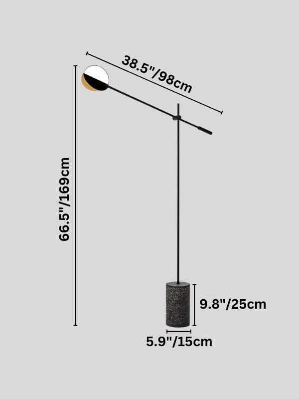 The Lorvex Floor Lamp is a sculptural light fixture with a minimalist profile, featuring a slender iron frame balanced on a terrazzo base. Its adjustable arm and disc-shaped shade create a striking asymmetry, making it ideal for modern living rooms, reading nooks, or workspaces. The terrazzo foundation provides stability, while the streamlined form enhances contemporary interiors. Available in two colors, this floor lamp blends industrial and artistic elements for functional ambient lighting.