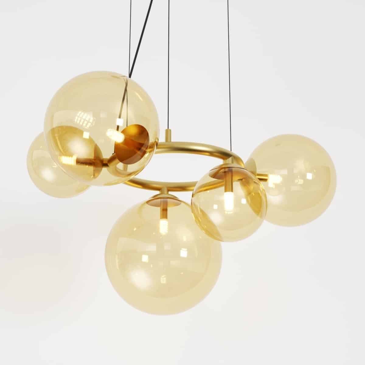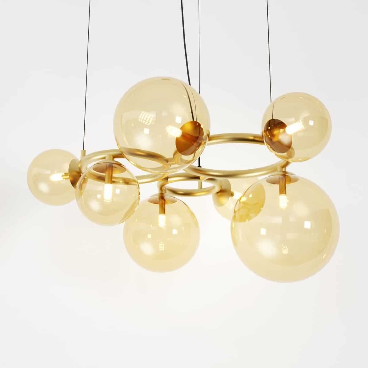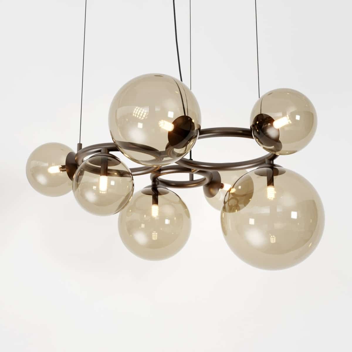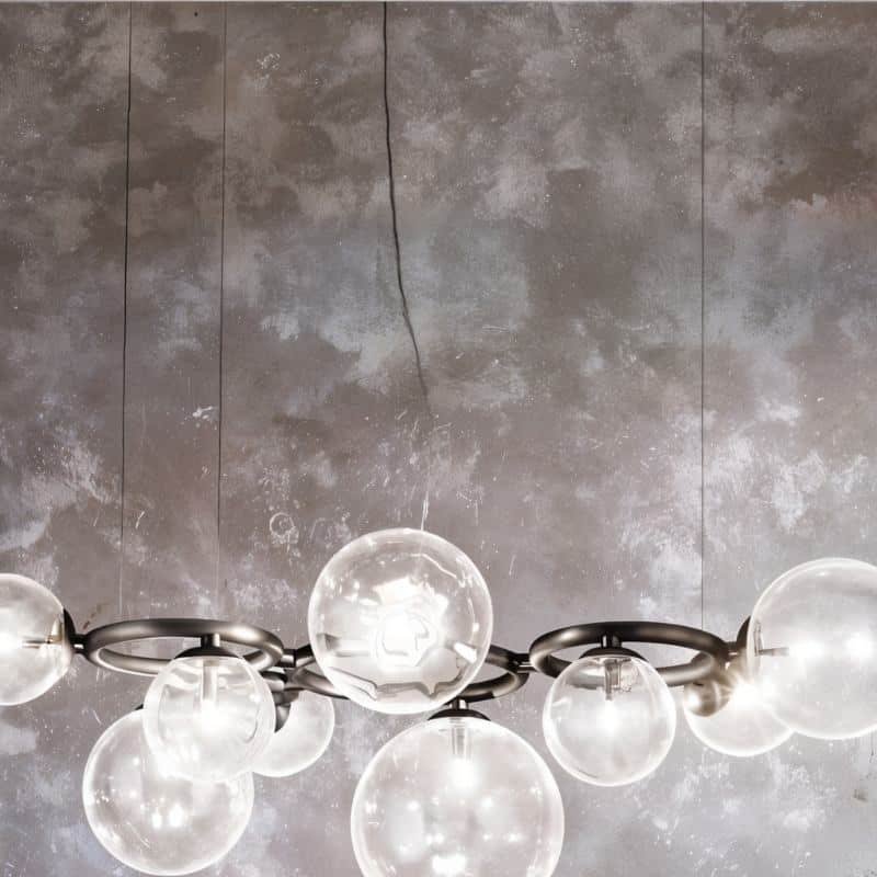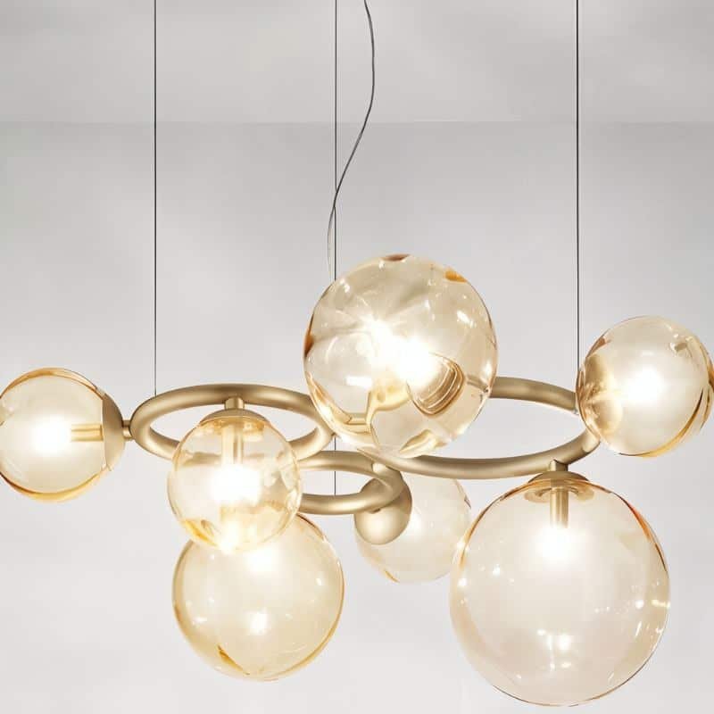 Lucienne Chandelier is a visually stunning statement light, that lends a luxurious feel to any room. It features an organic cluster of glass spheres suspended on a thick circular metal frame. The LED lights are positioned inside the bulbs and emit a soft and subtle glow that is refracted through the surrounding glass spheres. Lucienne Chandelier is an elegant lighting ideal for entryways, foyers, dining areas, and bedrooms, providing a sophisticated gleam to any residence.