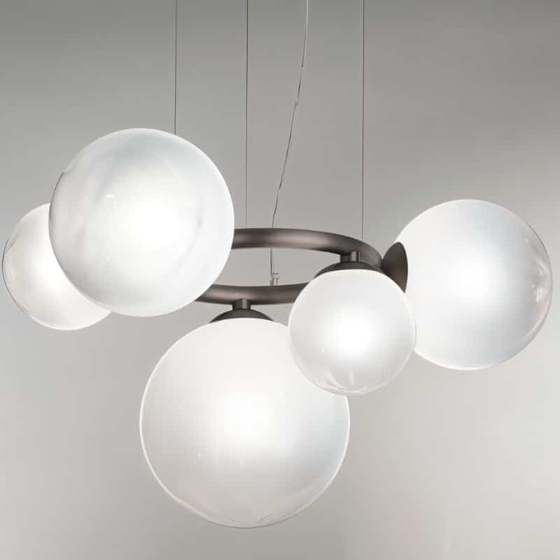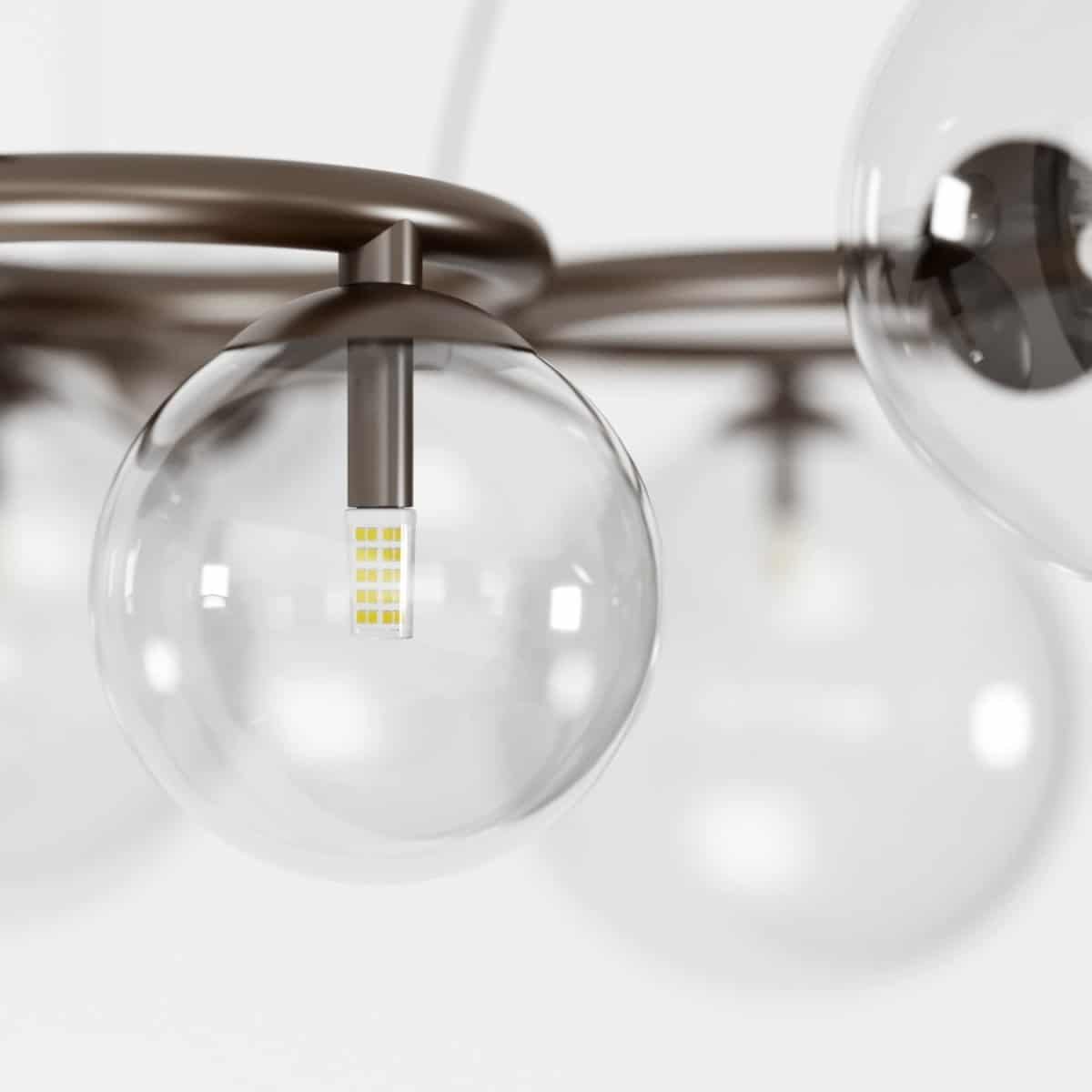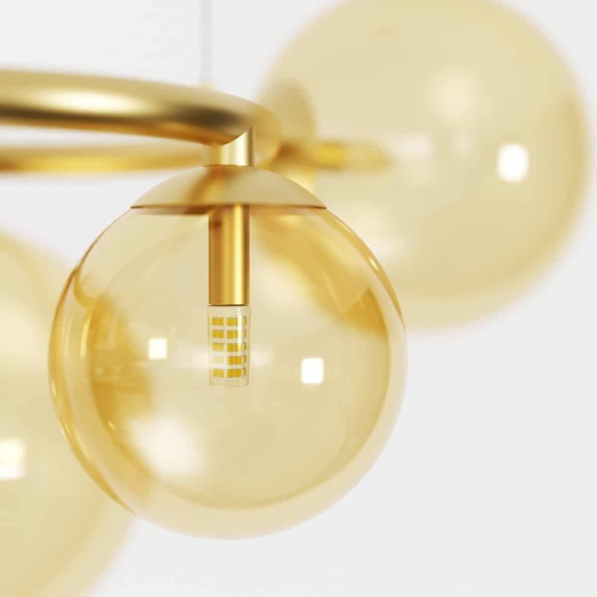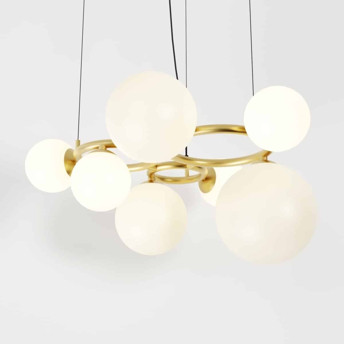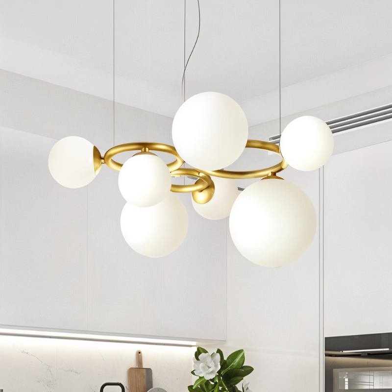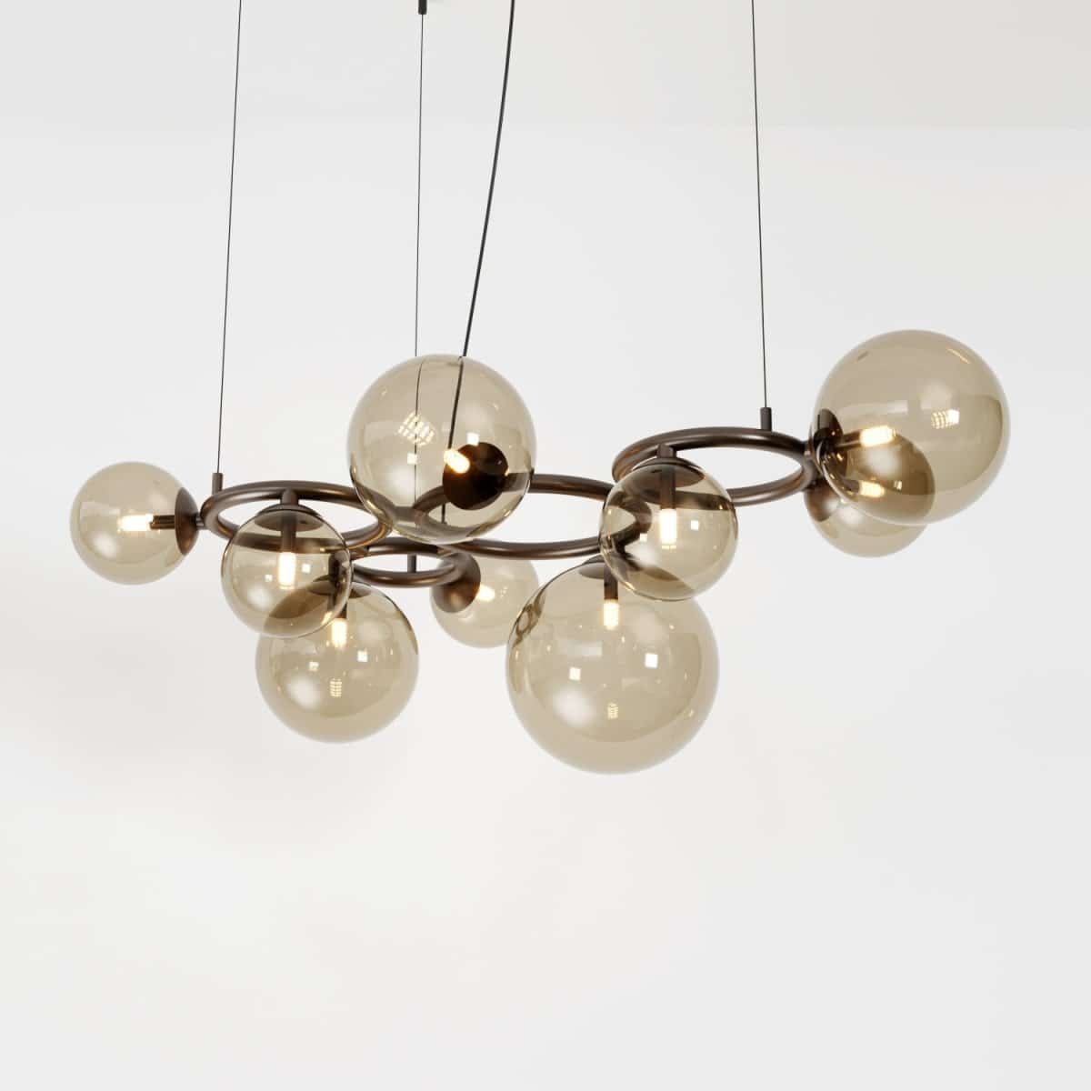 Lucienne Chandelier is a visually stunning statement light, that lends a luxurious feel to any room. It features an organic cluster of glass spheres suspended on a thick circular metal frame. The LED lights are positioned inside the bulbs and emit a soft and subtle glow that is refracted through the surrounding glass spheres. Lucienne Chandelier is an elegant lighting ideal for entryways, foyers, dining areas, and bedrooms, providing a sophisticated gleam to any residence.