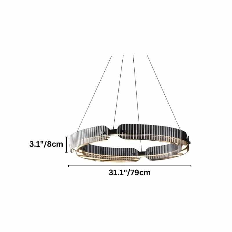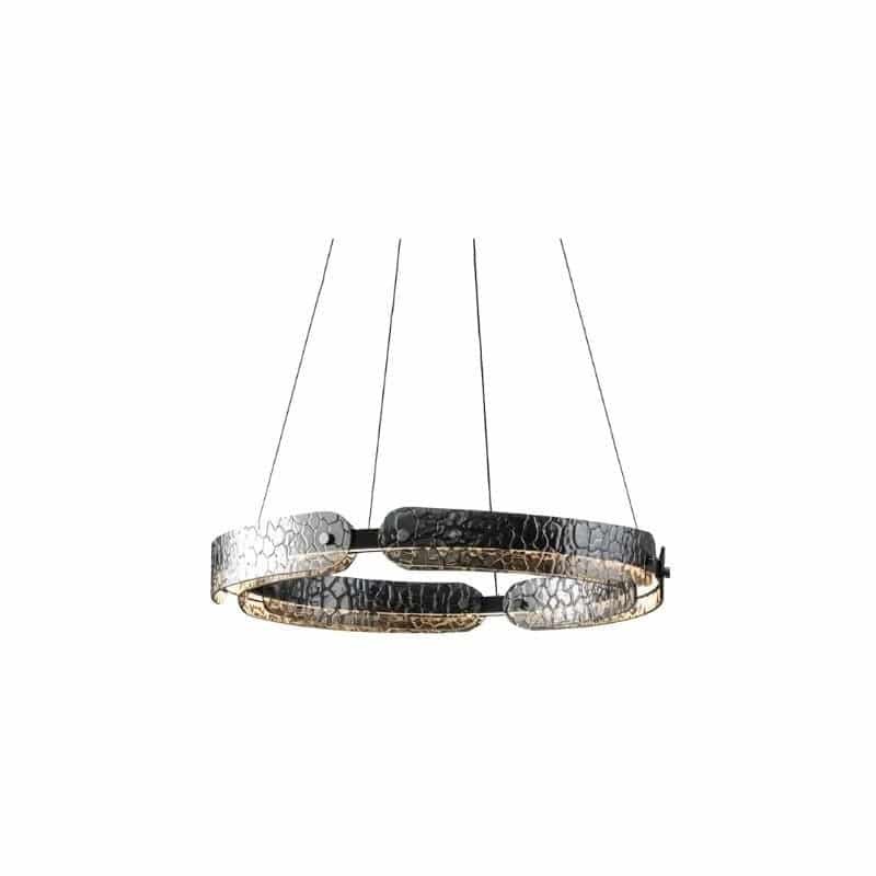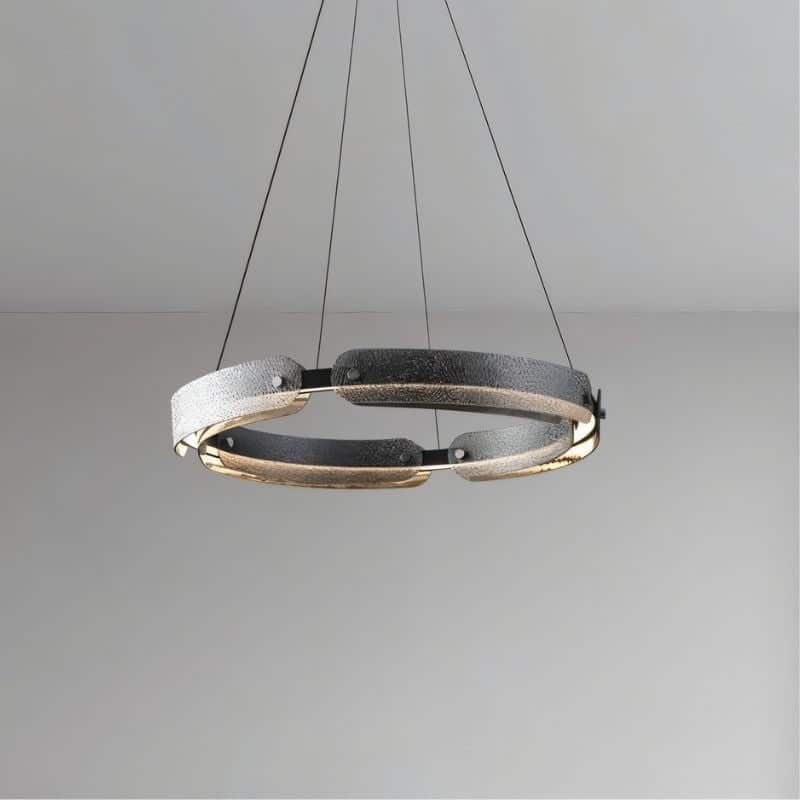 The Lunetra Chandelier is a striking modern light fixture crafted from iron and glass, featuring a distinctive ring design. Suspended by sleek cables, its segmented frame is available in four unique patterns, adding visual intrigue. With two size options, it seamlessly fits into dining areas, living rooms, and upscale commercial spaces. The integrated lighting enhances its artistic appeal while providing balanced illumination. Ideal for contemporary interiors, this chandelier blends functionality with avant-garde aesthetics.