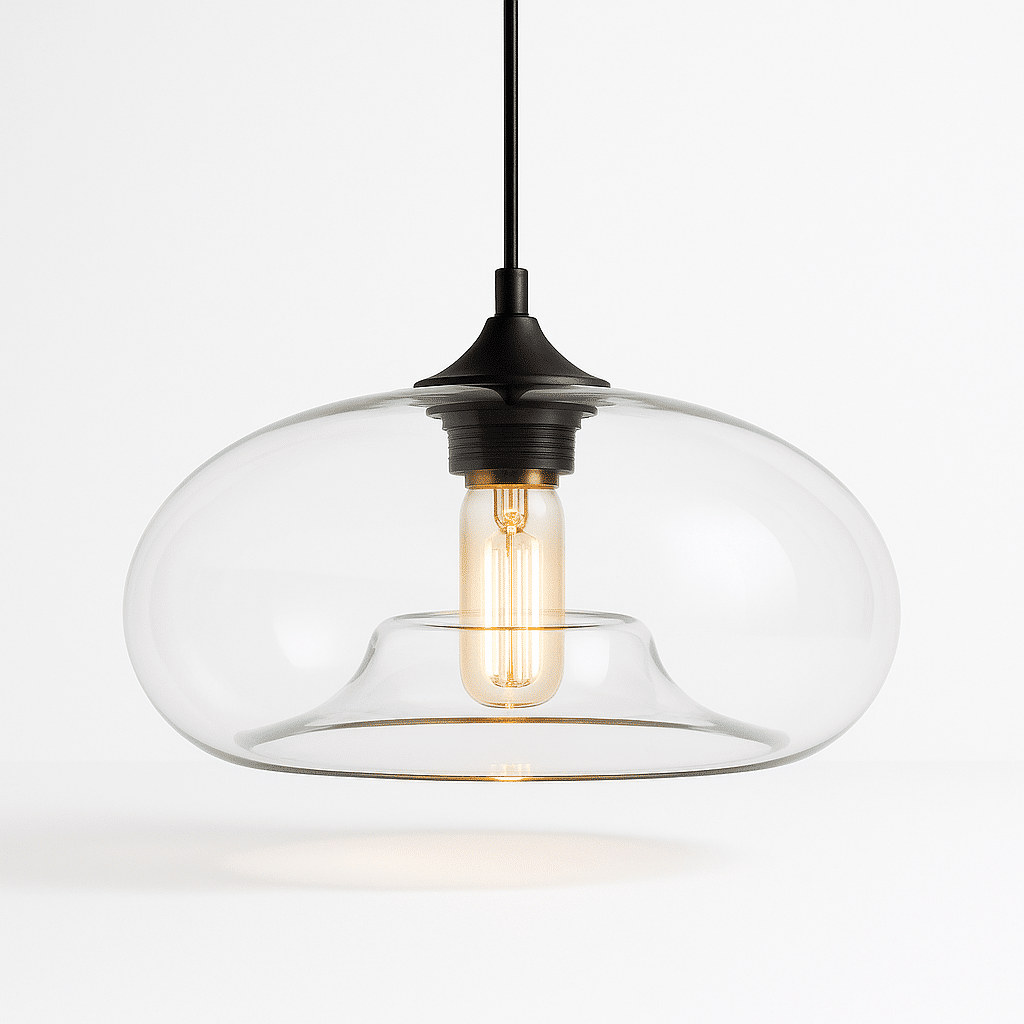 The Lustre Pendant Light features a stunningly vibrant hand-blown clear glass shade with a matte black bulb holder. The hanging light adds a touch of warm comfort to your environment with its calming radiance while the glass shade protects your comfort while maximizing the light. This versatile pendant light looks well hung alone over a dining table, in a pair over bedside tables, or in a trio over kitchen islands.