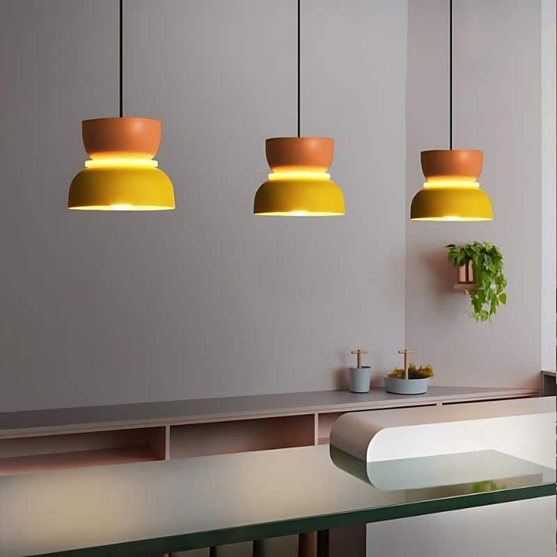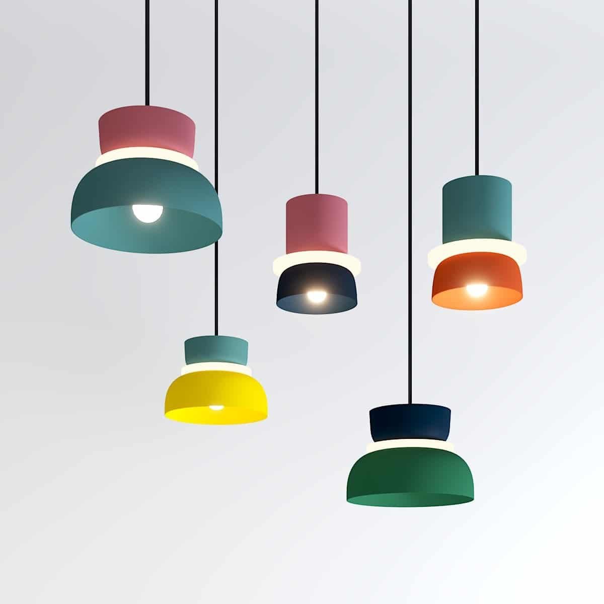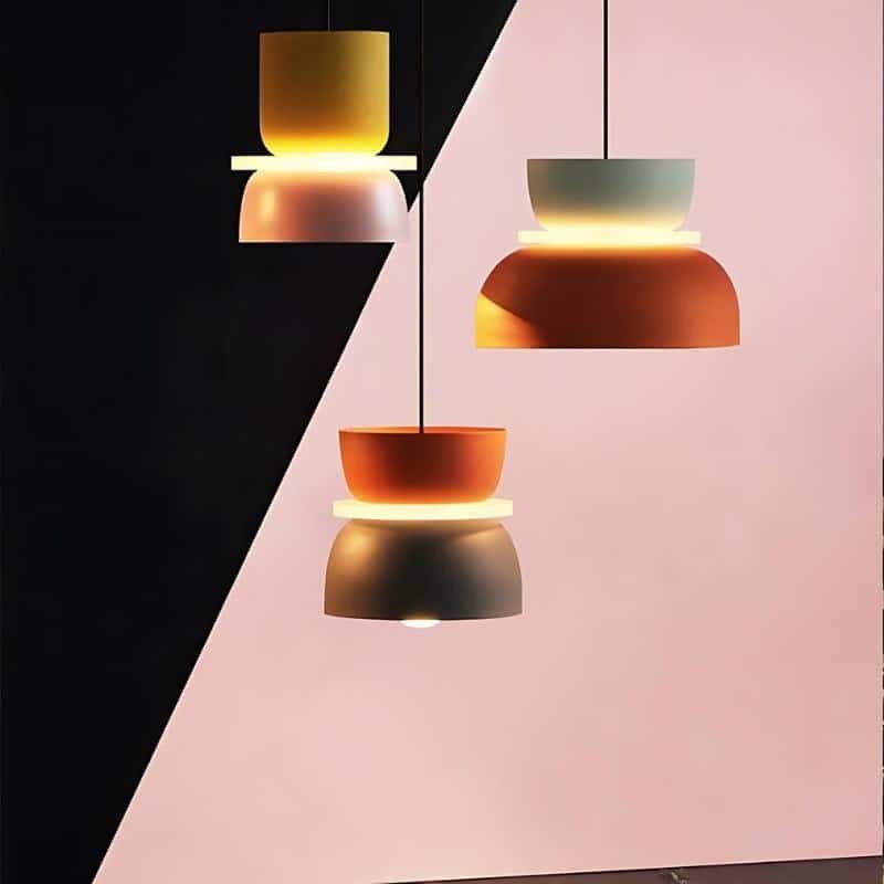 The Macaron Pendant Light is available in an astonishing range of colorful finishes. The innovative glare-free shape and uniform illumination distinguish the design. Made of high-transparency acrylic and high-quality aluminum, this lampshade has a matte finish and visible texture. It is anti-corrosion, rust-resistant, and long-lasting. Ideal for the living room, office, dining room, or kitchen, or as a present.