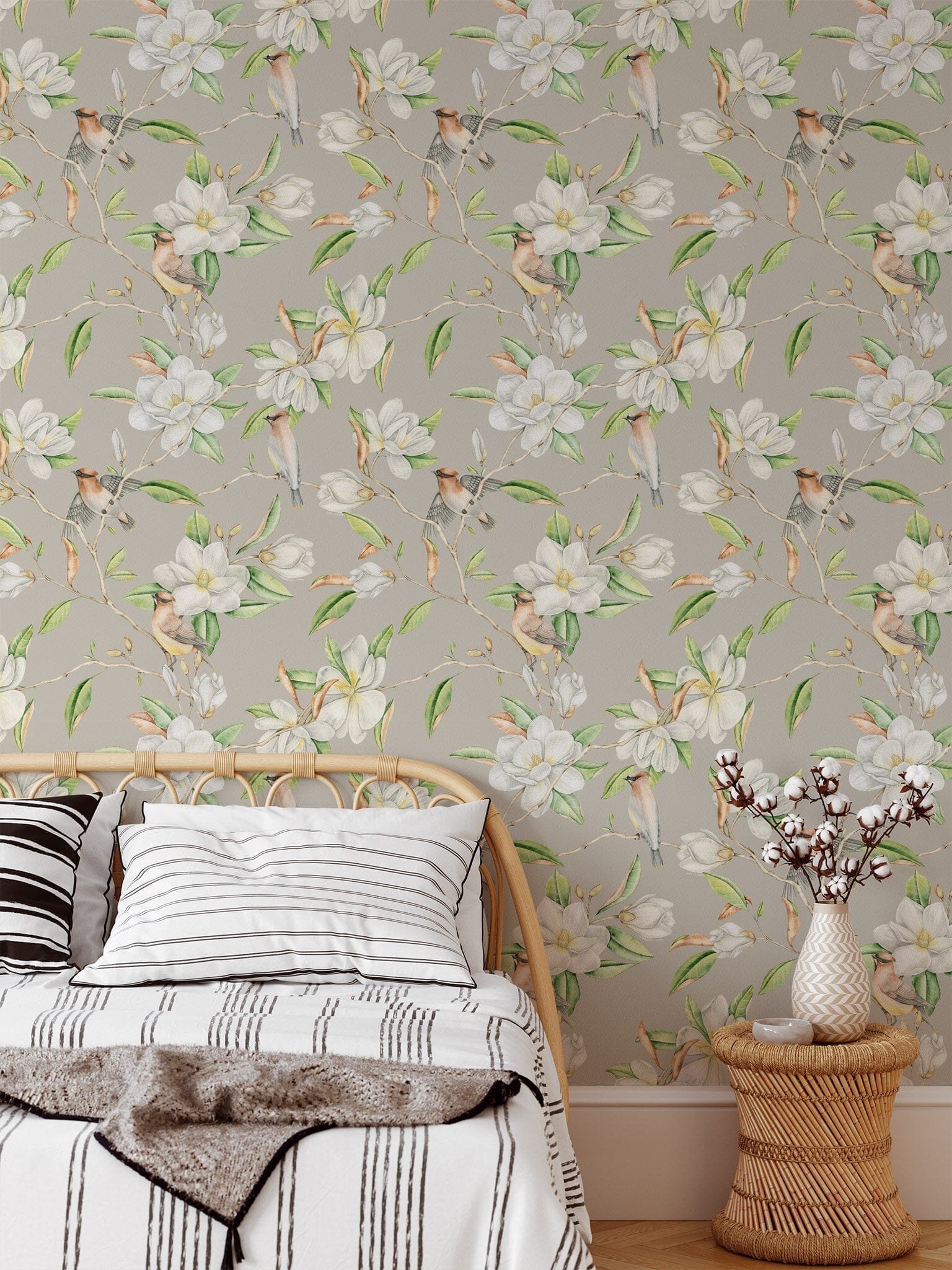 Our Magnolia Flowers and Birds Wallpaper is like having a beautiful, blooming garden in your home. Delight in the breathtaking magnolias, with vibrant color and realistic detail. Bring the joy of nature into your living space with our removable wallpaper that sets your home apart.