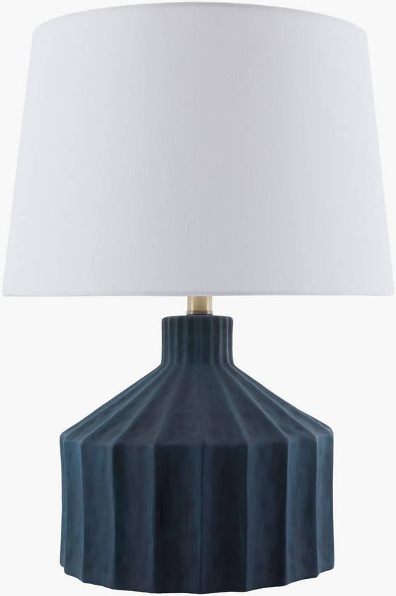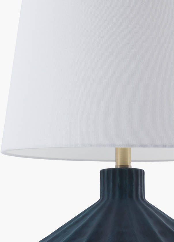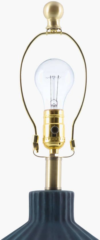 • Colors: Body: Dark Blue; Shade: White; Finial: Metallic – Brass; Harp: Metallic – Gold; Cord: Translucent