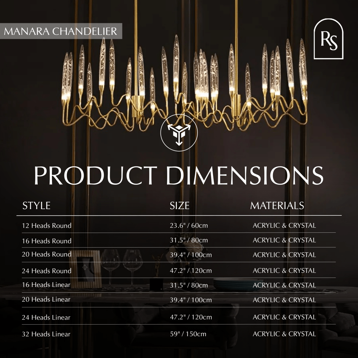 The Manara Chandelier stands as a remarkable lighting fixture that imparts a regal ambiance to your residence. Boasting a metallic frame finished in gleaming gold or silver adorned with transparent bubbled lampshades, this chandelier seamlessly blends a modern aesthetic with a touch of classical elegance. Install this distinctive piece prominently, whether as the focal point in your living room or suspended above the dining table and witness its enchanting allure.