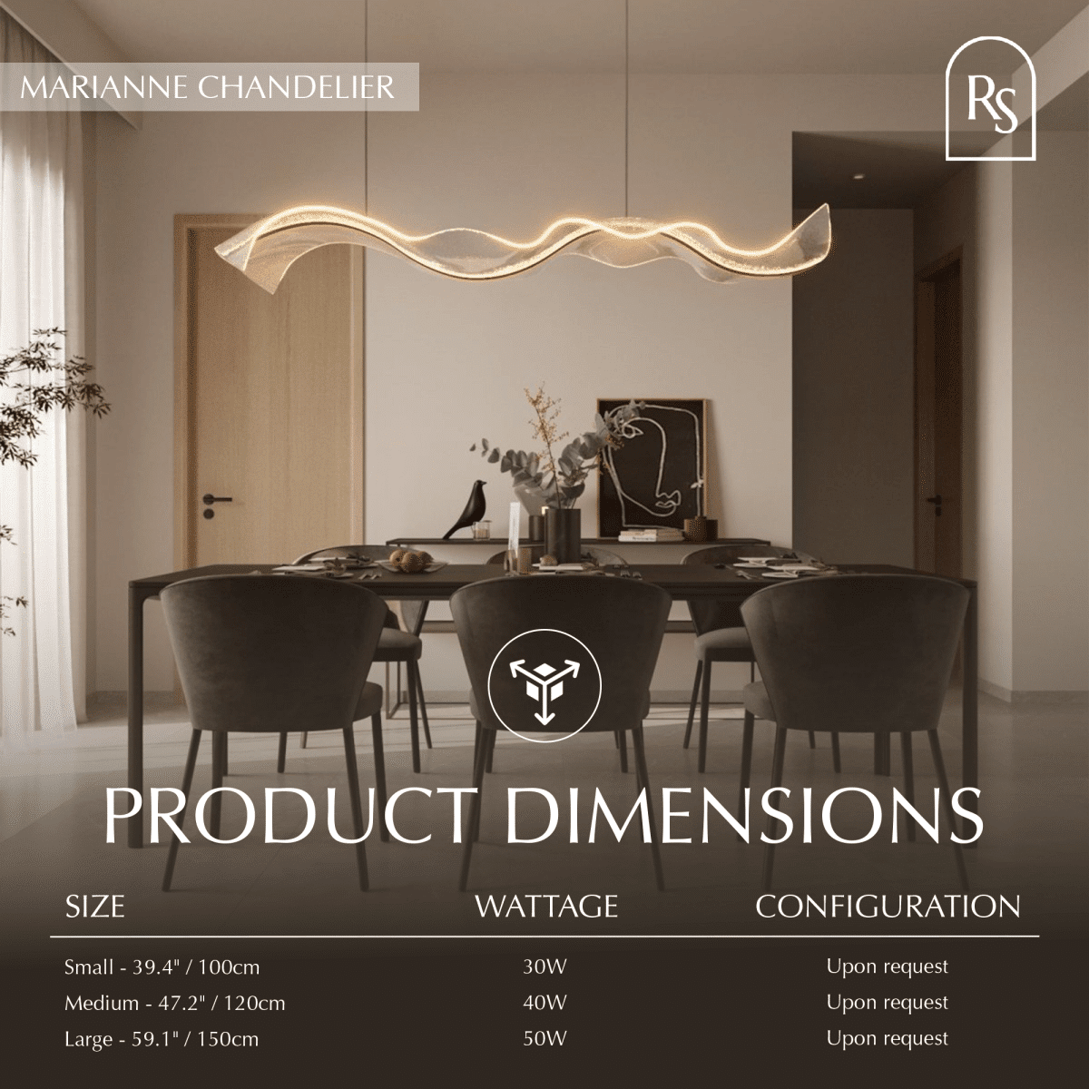 The Marianne chandelier embodies the pinnacle of sophistication and refinement. A distinctive undulating form crafted from transparent acrylic emanates a dynamic energy that commands attention in any setting while the solitary ribbon of polished gold-finished aluminum accentuates its opulent allure. Illuminating your living area with a soft, graceful radiance, this chandelier is a luminous masterpiece and an exquisite focal point that imparts a touch of glamor to any space.
