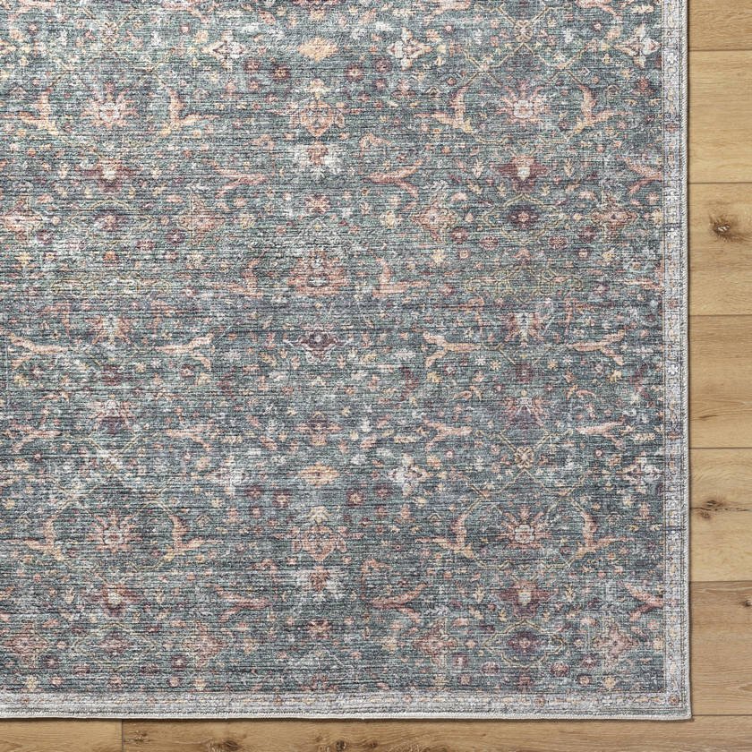 Introducing the Mary Collection, an exquisite area rug born from the unique collaboration between Vivir and Livabliss. This updated traditional piece beautifully marries intricate floral and foliate motifs in a symmetric arrangement, encapsulated in a vintage-inspired transitional style that adds depth and character to any room. Its machine-woven construction from polyester ensures durability and a medium pile height that stands up well in high-traffic areas, making it both practical and stylish. The cool gray and slate blue tones are elegantly accented with touches of mocha and wheat, creating a serene yet sophisticated palette perfect for various decors. Crafted in Turkey, this rug features fringes that add an extra layer of elegance to its design. For longevity and comfort, the use of a rug pad is recommended, while spot cleaning with mild detergent takes care of any spills or stains, ensuring your area rug remains a centerpiece in your home for years to come.