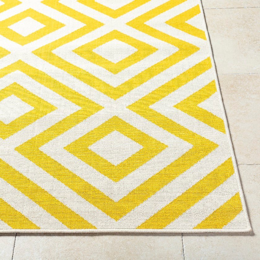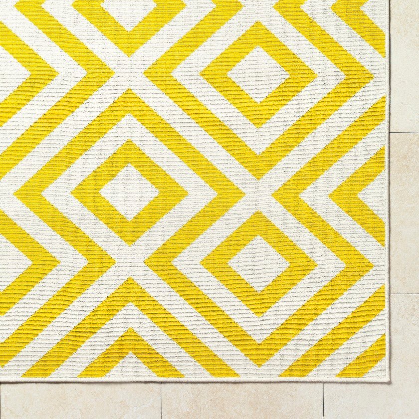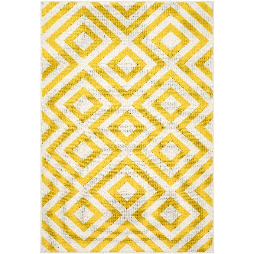 Whether anchoring your outdoor seating area, enhancing your dining space, or bringing modern flair to your entryway, the Maya Modern Saffron Area Rug adapts to any setting with ease. Its bold design and durable construction make it an excellent addition to your decor collection.