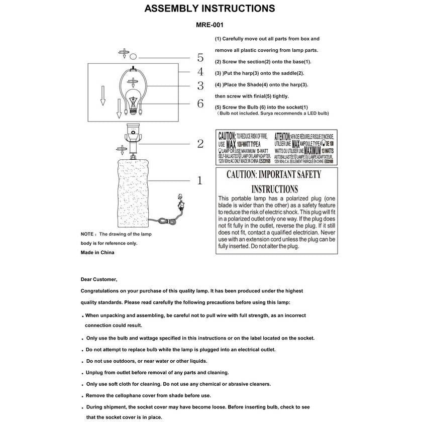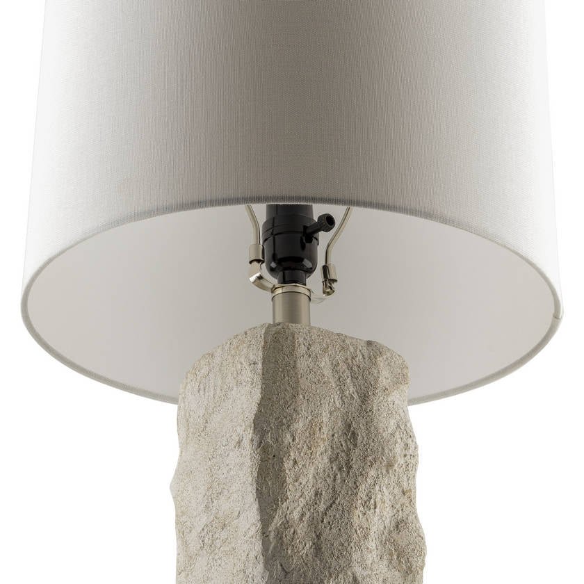 - Material: Body: Resin; Shade (Outside): Linen; Shade (Inside): Polystyrene; Finial: Iron