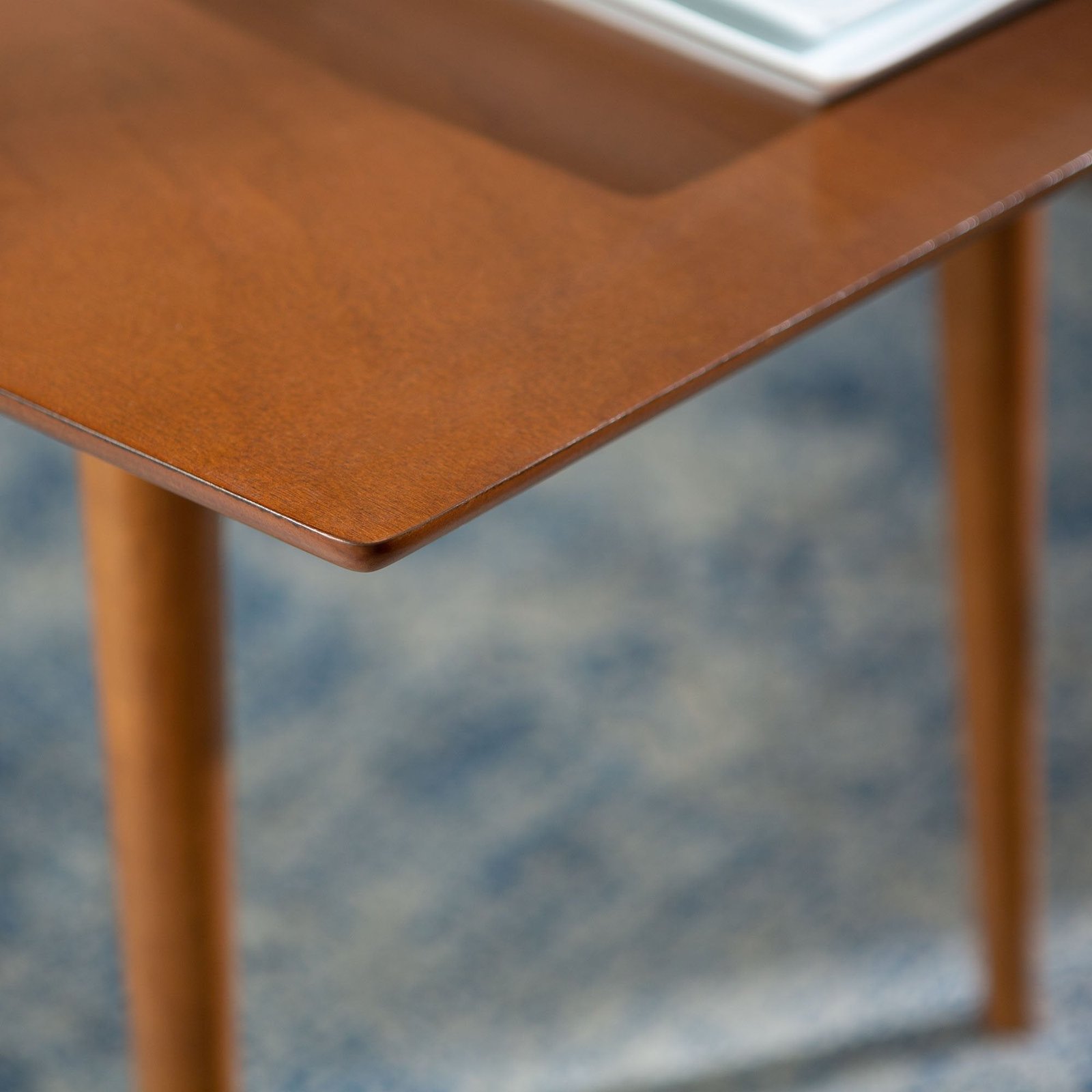 Bring a mid-century flair into your kitchen or dining room with this simple, yet sleek wood dining table. The beautiful rich wood finish made of wood veneer and high-grade MDF with solid wood legs, create a durable, long lasting dining table. This table also gives you the table space needed for you to enjoy your family gatherings, while also styling up your space with a mid-century modern look.