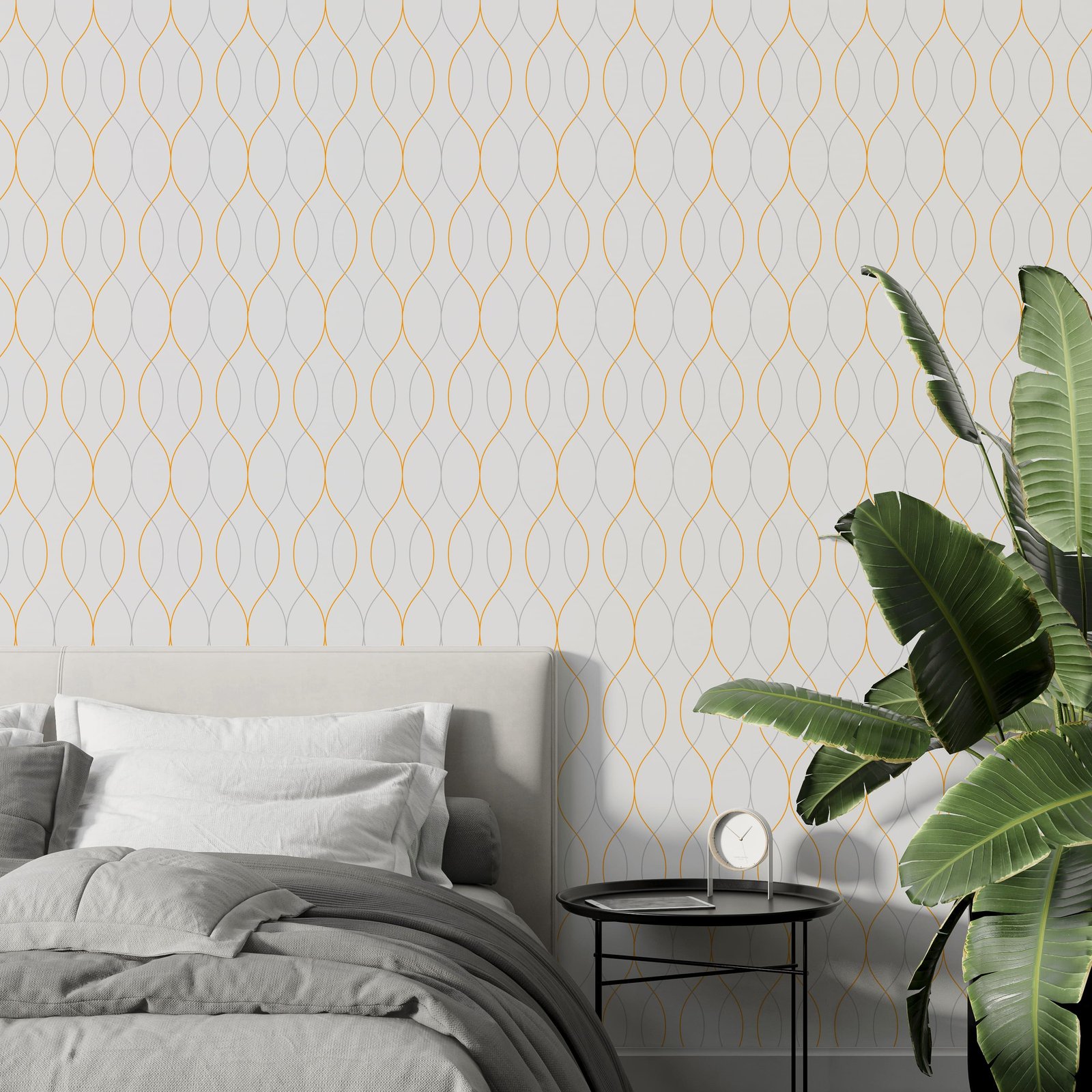 Transform your space with the sophisticated elegance of our Gold Line Geometric Wave Peel and Stick Wallpaper.