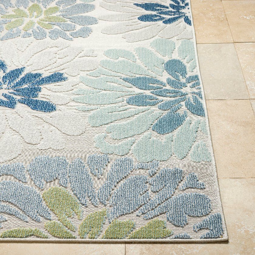 - Colors: Cream, Light Slate, Pale Blue, Blue, Dark Blue, Olive