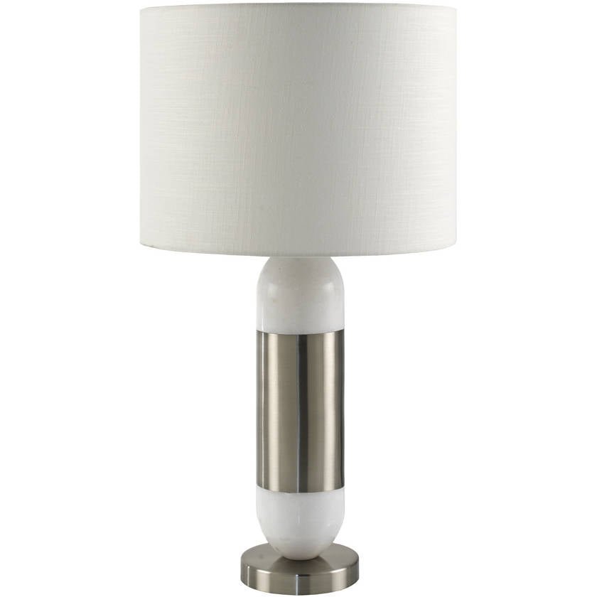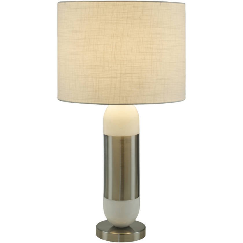 Indulge in luxury with the Monte accent table lamp. This chic lighting piece boasts a 29-inch tall body made of exquisite marble and iron, lending your space an air of opulence. The Iron base ensures stability while the linen exterior and polyester interior of the shade emit a soft, warm glow when lit. Not only is it a feast for the eyes but also easy to maintain ? just wipe clean with a dry cloth and avoid harsh cleaners to keep its finish pristine. Whether you’re looking to elevate your room’s decor or simply want a tasteful lighting solution, this stunning table lamp is sure to impress.
