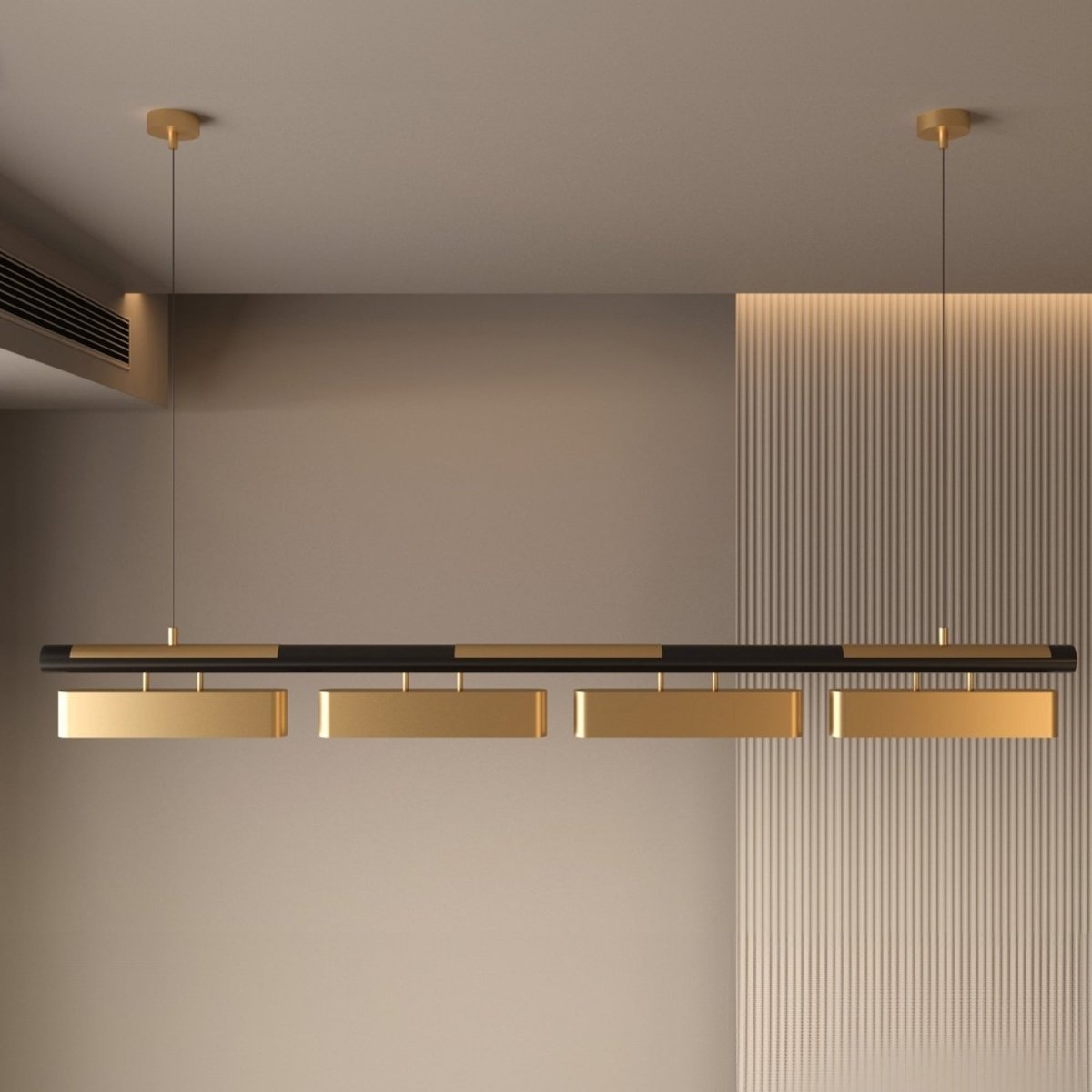 The Munira Chandelier brings warmth and balance to any room with its horizontal body encasing slotted opal diffusers that emit soft diffused light.