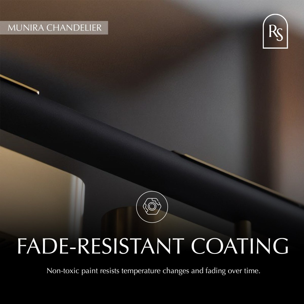 Constructed from durable iron and alloy, Munira pairs solid materials with a lightweight, airy design. The matte black finish gives it a clean, modern edge while keeping the overall look understated.