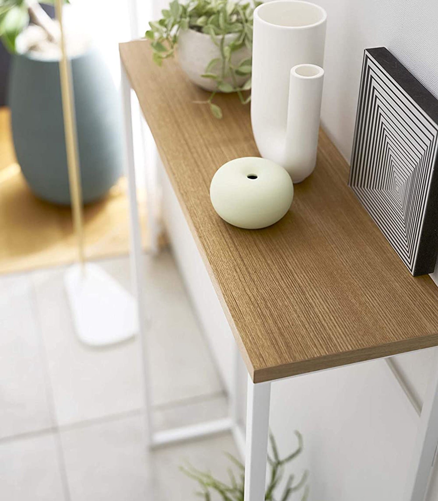 For when “narrow” describes your entryway Bring a touch of style and elegance to the narrowest of entryways. If your entryway is less than spacious, but you still could use some organization, try out this entryway organizer. Hang umbrellas using the provided hooks along the frame’s edge, while still having room for a key tray or knick-knack.