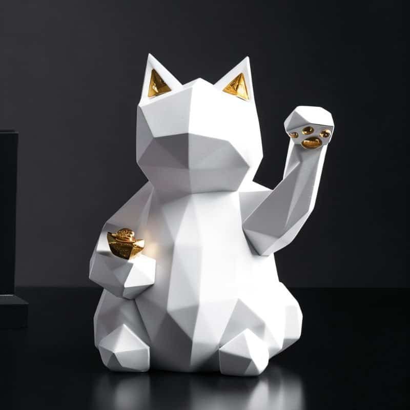 The Neko Figurine is a unique and adorable collectible that you can display in your home. The traditional distinct design of the lucky cat has been remodeled in this figurine with a unique geometric shape that artistically accents your décor. The shape of the cat has been carved excellently made with fine resin. Neko brings all the joy, flair, and uniqueness to a conventional lucky cat sculpture. Neko is the ideal present for cat lovers, for house opening, and as a birthday gift.