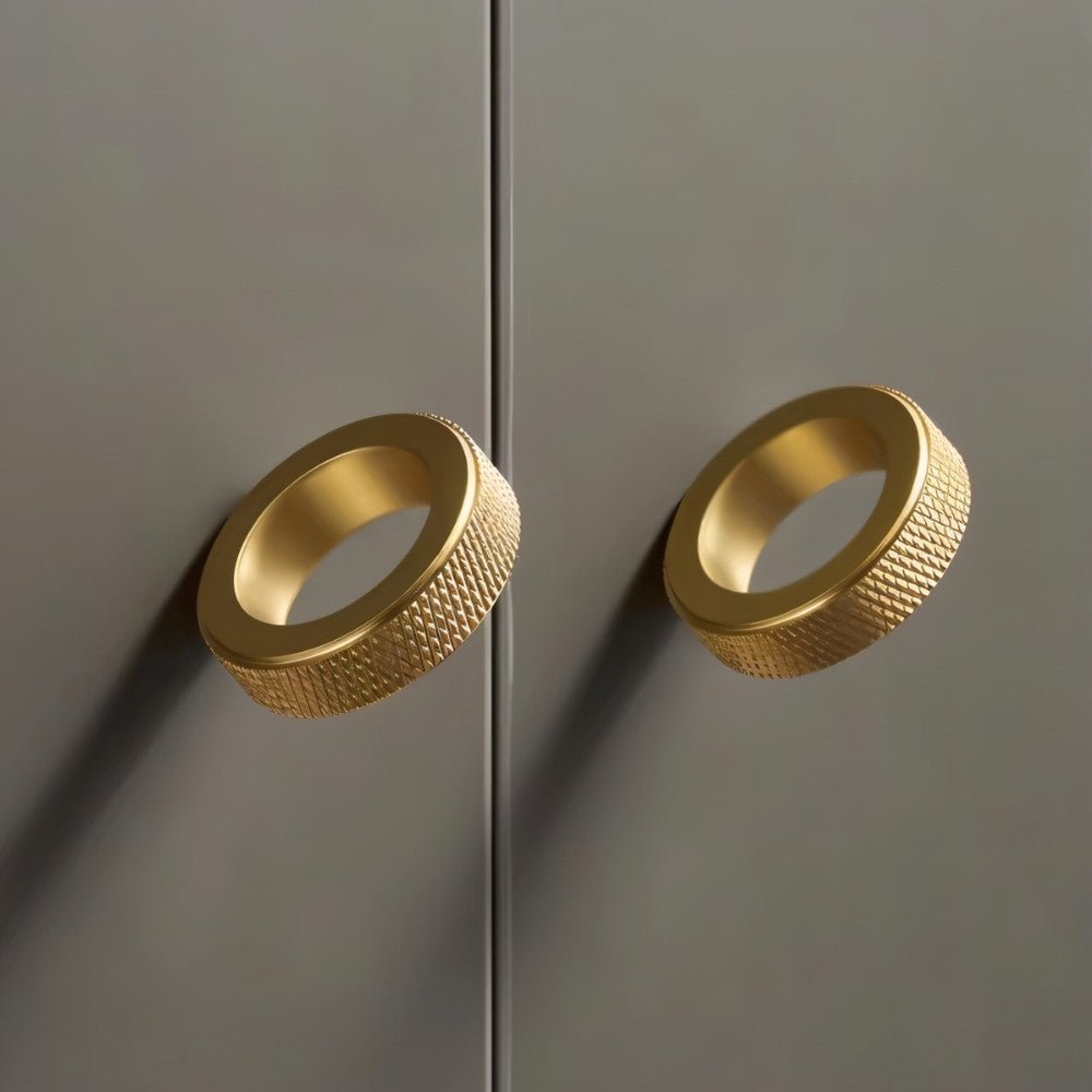 The Noah Knob, crafted from durable brass, features a sleek cylindrical design with a knurled texture for a secure grip and a polished golden finish for a luxurious touch. Perfect for cabinetry, drawers, and wardrobe doors, it enhances modern interiors, blending seamlessly into kitchens, bathrooms, and living spaces.