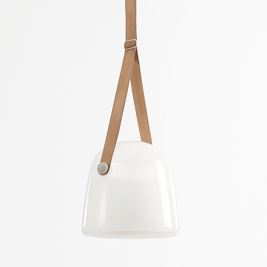A blend of classic and modern design, offering an eye-catching pendant that combines high-quality glass and leather. Its bell-shaped design illuminates spaces with smooth, tension-filled light, suitable for various areas like living rooms, hallways, lofts, and dining rooms. Choose from two stunning colors for a bold statement in any contemporary space.