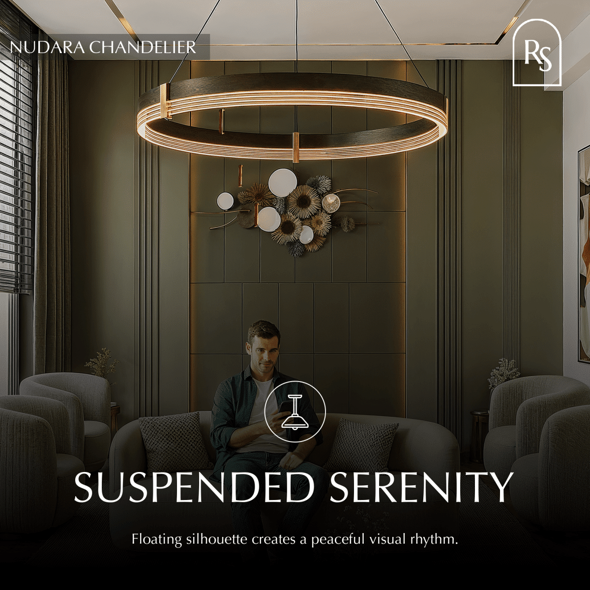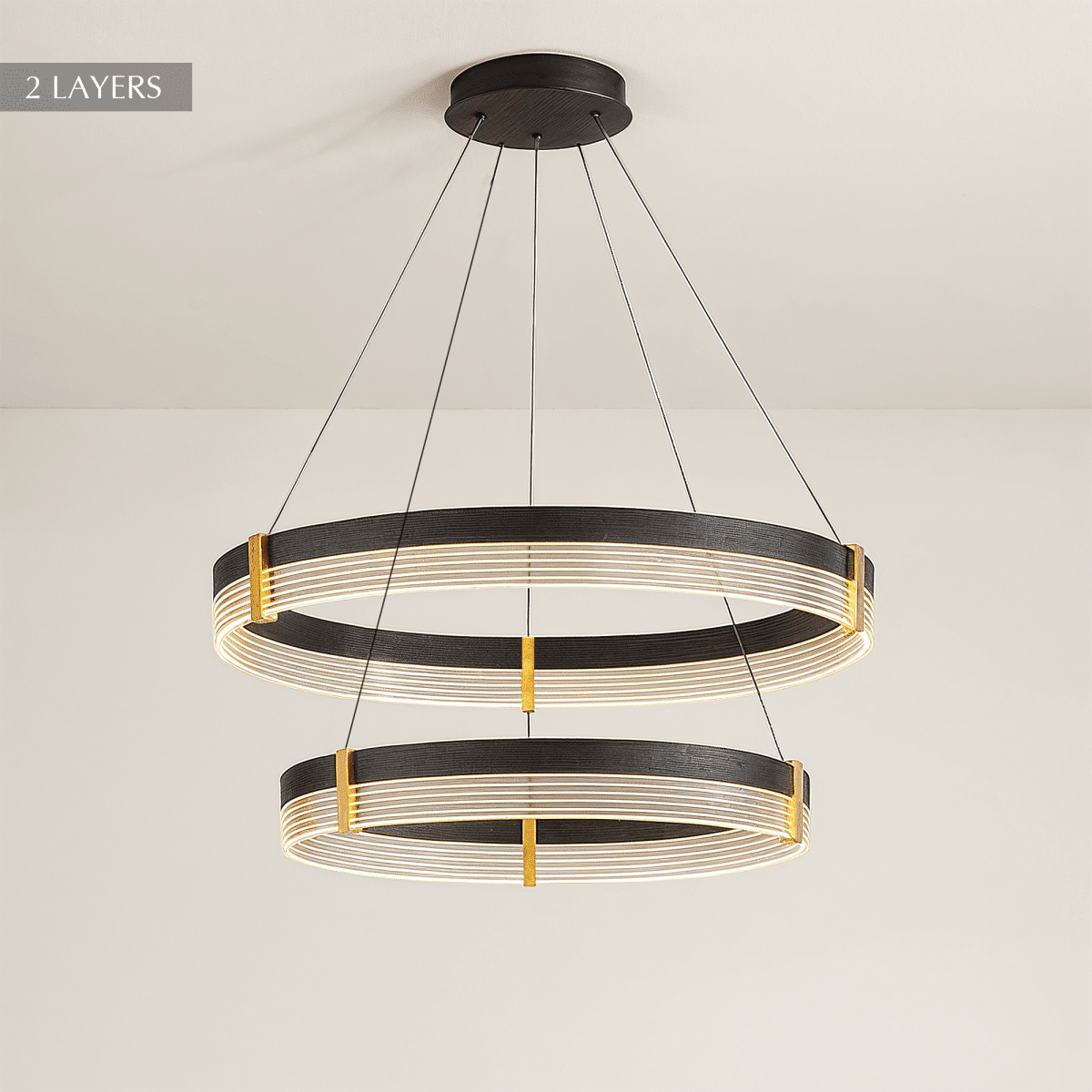The Nudara Chandelier transcends the realm of ordinary lighting fixtures, ascending to the stature of a luminous masterpiece. Designed with round metal frames, boasting a bold black finish adorned with elegant gold accents and clear acrylic that enhances its brilliance, creating a soft and glare-free illumination that envelops your space in a warm embrace. Whether you place it in the grandeur of a foyer, the dining room, or the bedroom, the Nudara leaves a lasting impression.